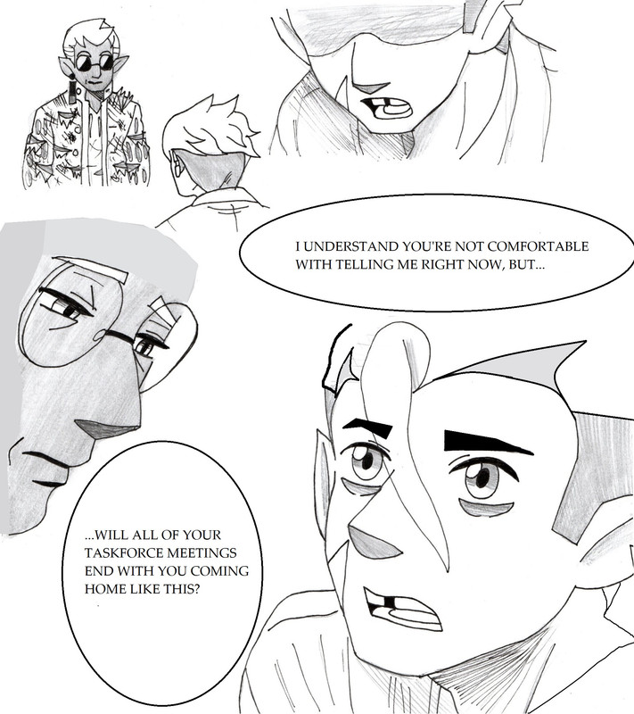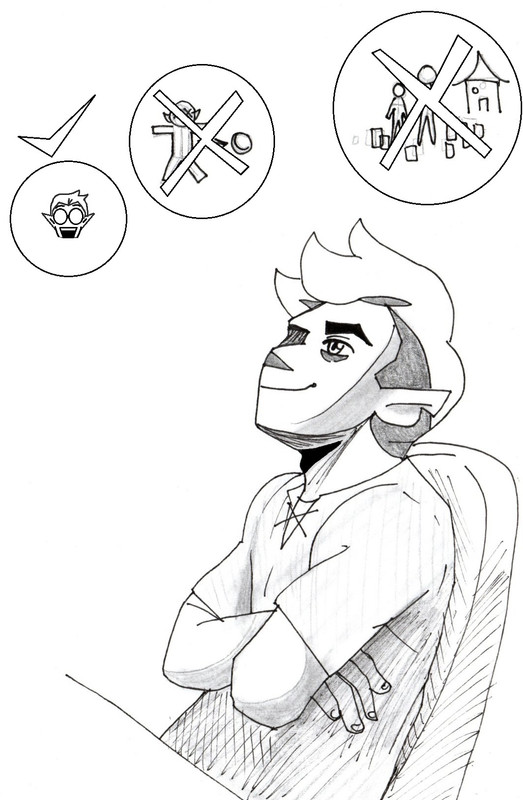 “I consider the encounter with the Synesthesia syndicate a fluke,” Darius replies with a curt sigh, “It’s not possible for you to always be around to protect him, Raine. And besides, it’s not like anyone knows what the Golden Guard actually looks like since he wore his mask all of the time while he did his patrols around town. In hindsight, this is a best case scenario since the mask protected his identity. Nobody should really know who he is so he can walk around freely incognito.”