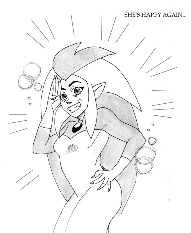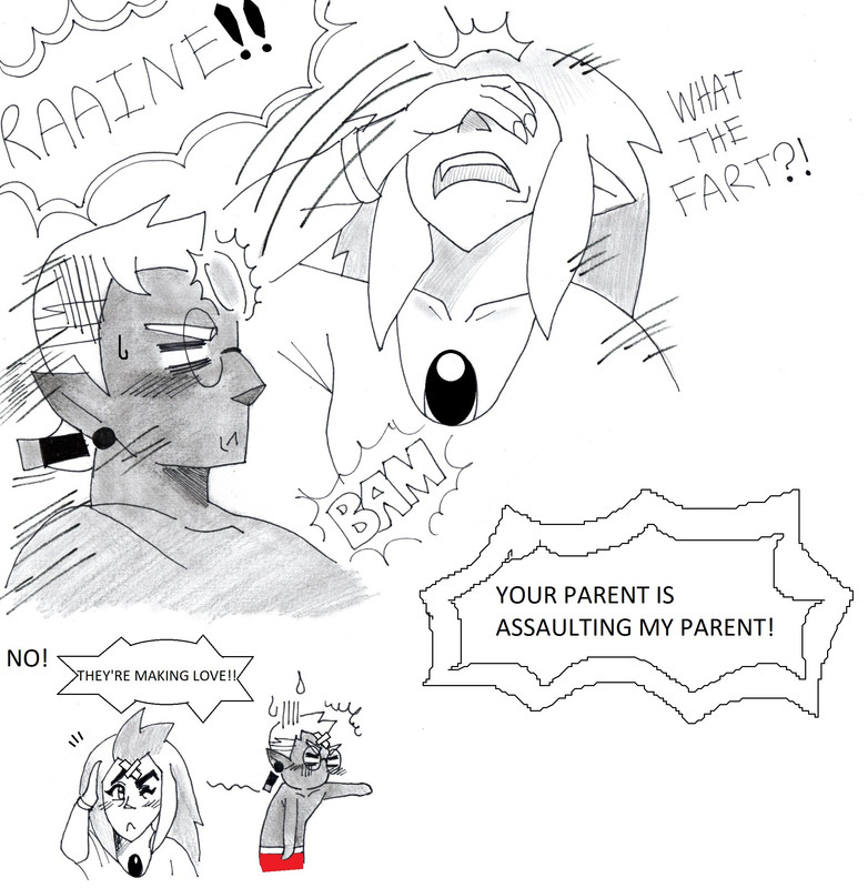 Viney politely ignores Raine’s comments and waves her finger to levitate a healing circle around Raine from head to toe to heal most of their cuts and bruises, “There! Now you’re only scarred emotionally!”