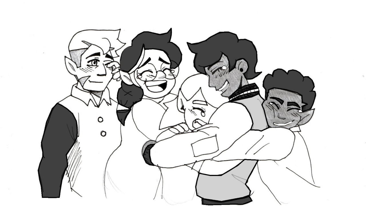 Raine’s eyes glisten at this heartwarming news. Raine can’t think of anything to say besides a quiet “Yeah…you all are pretty amazing kids. Hunter included.”