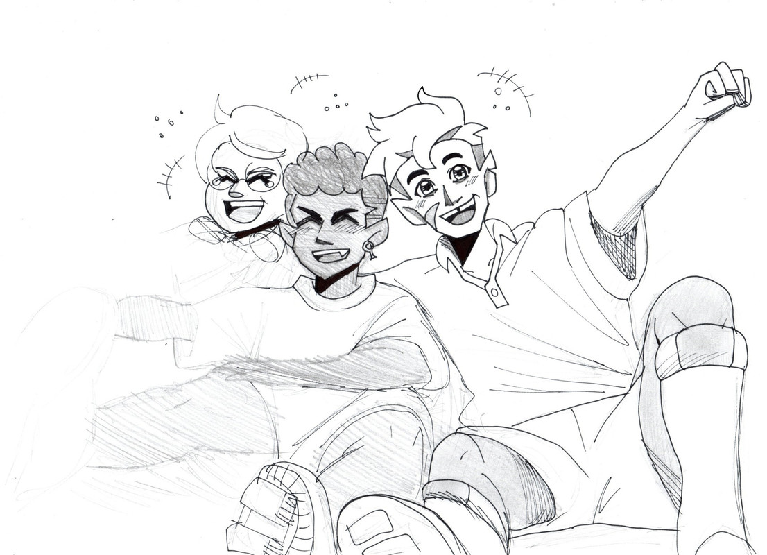 “It’s too bad you didn’t join us the other day at the Flyer Derby tournament, but I did take a few pictures. Here,” Raine says as they grab a few physical square prints from their satchel and hand them to Darius to look at.