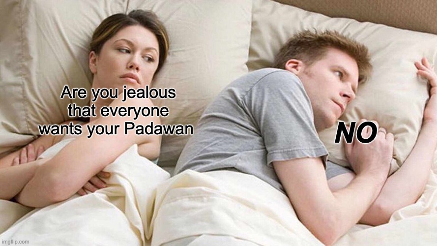 This meme will be bad for his self-esteem, won't it be. His new padawan will be quite a joke until this dies down.