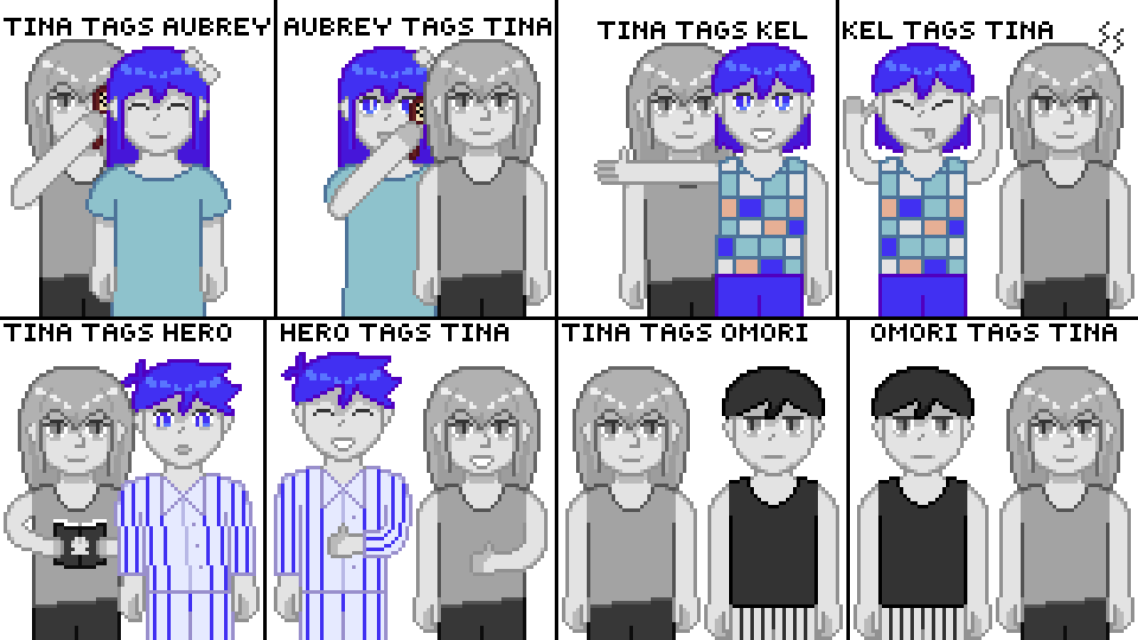 Hug tier 3 - Kel will be angry and push Abbi away, Abbi is angry and pushes back (Both will be slightly hurt and angry). Aubrey will be ecstatic and Abbi will be happy, also defense up. Abbi will be ecstatic when hugging Hero and will gain a lot of health back. Omori/Sunny will have no reaction making her depressed