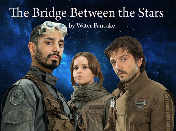 A fic cover and chapter headers for "The Bridge Between the Stars" by waterpancake.