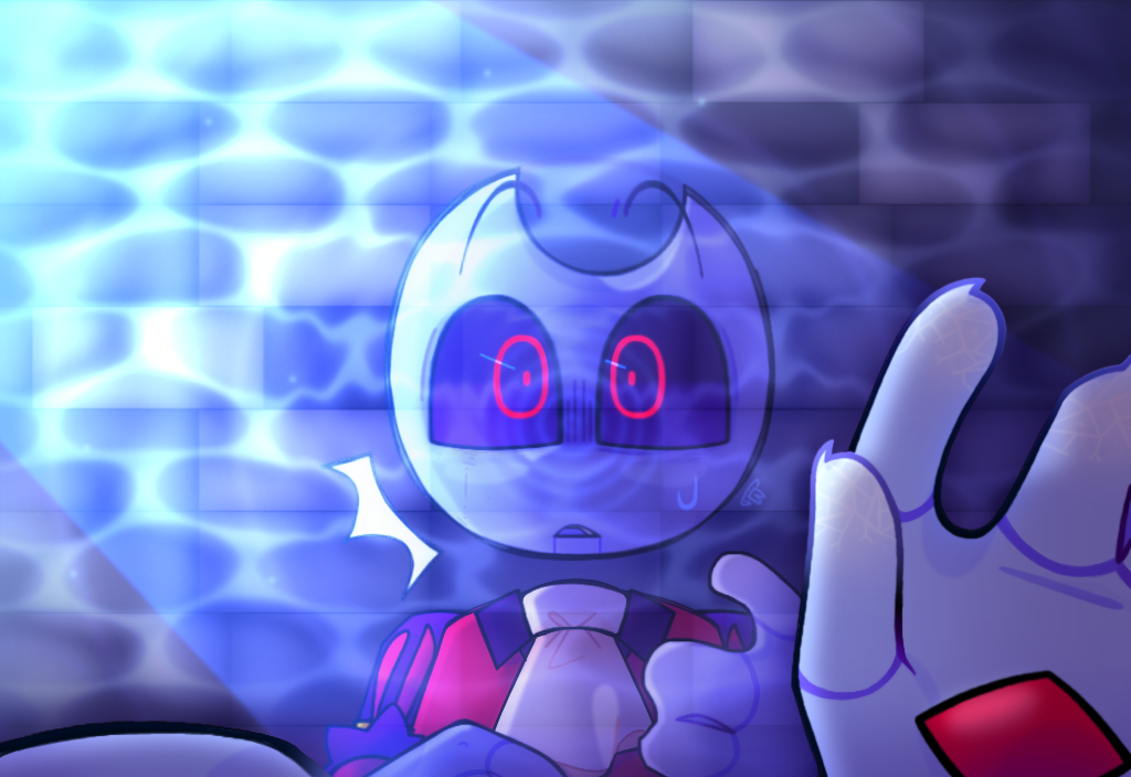Their reflection hiccuped, as tears filled their eyes, vision blurring once more, glowing white tears falling to the floor, mixing and turning pink before being consumed by the red completely, as they curled in on themself again.