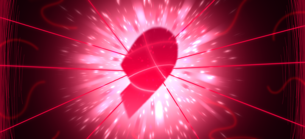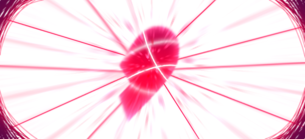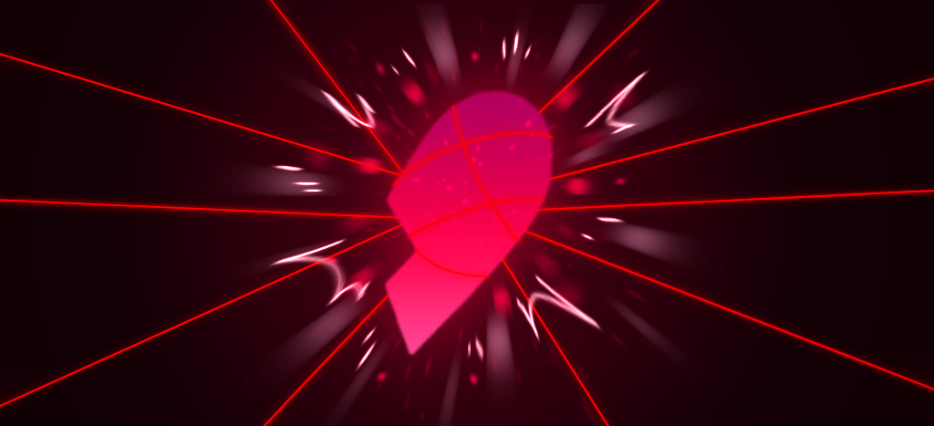 Am I bleeding!? He thought in panic, swiftly brushing a hand to their cheek, bringing it away to see red staining their palm, but not like blood, it was bright, and fluorescent, like the floors and stars.