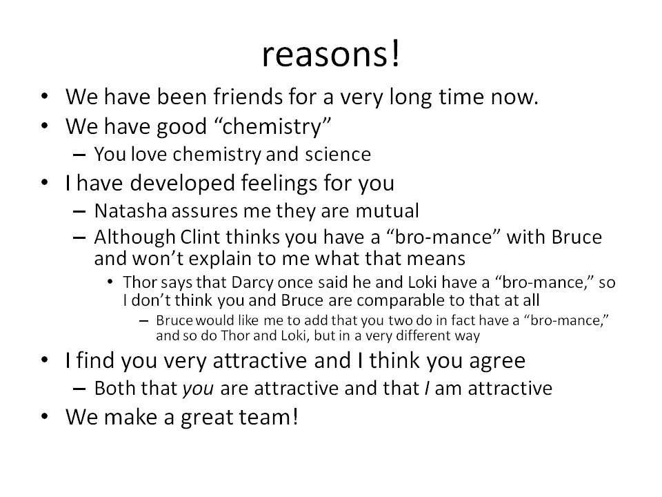 "Oh, it's a PowerPoint," Natasha explains, glancing at it. "Someone made it to ask someone to be their girlfriend."