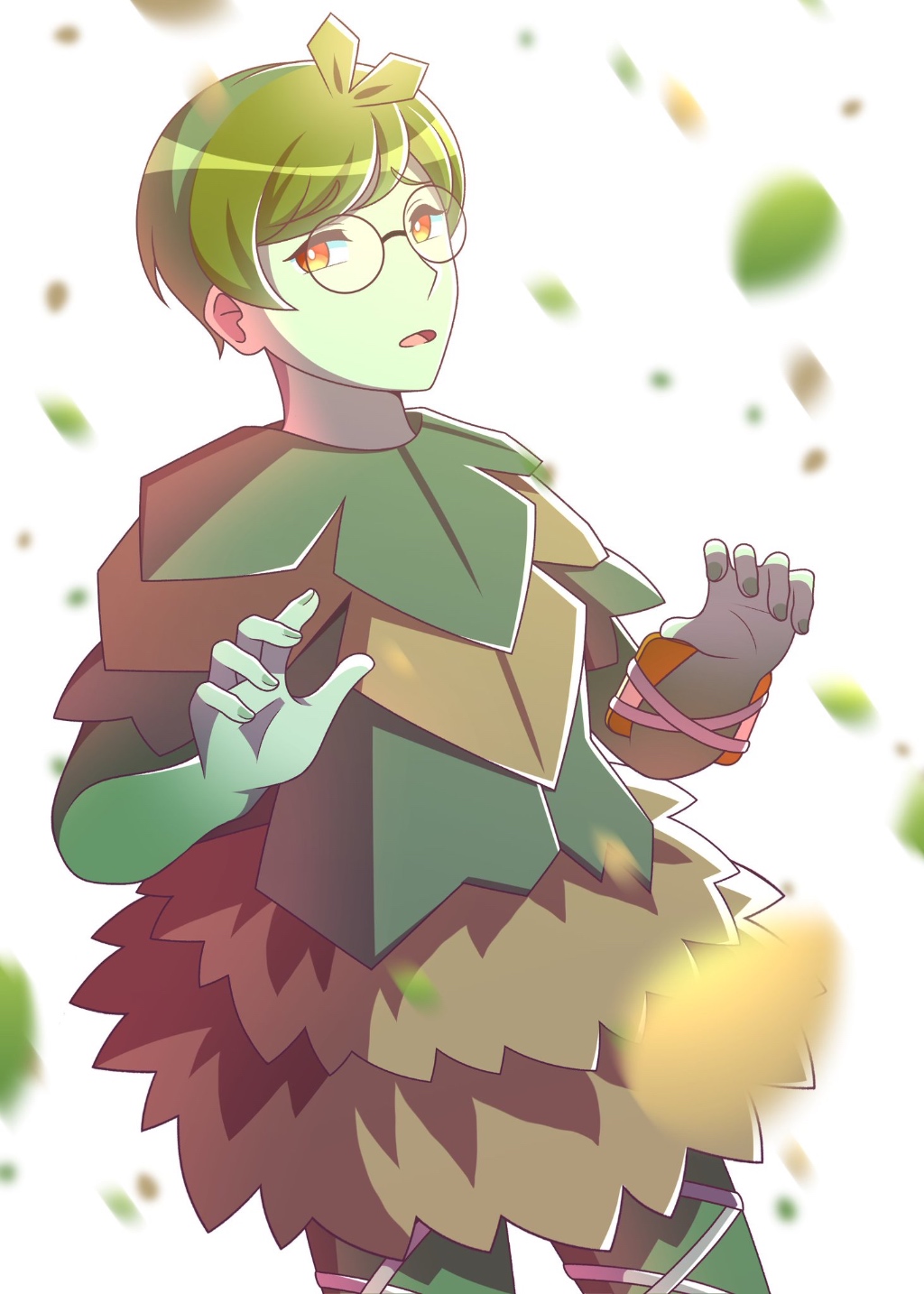 If she was going to be nice enough to help him collect the Herba Mystica, the least he could do was wait here until she arrived. He leaned against the mountainside, his large pack resting on the ground beside him, and perked up when her silhouette appeared in the distance. The girl wasn't hard to miss. A fluffy yellow hat sat atop her layered black hair. She also sported pink glasses, matching blue gloves and hiking boots, along with neon green leggings. All of which contrasted horribly with the school's standard orange uniform. It was like the uniform was the only article of clothing she would ever be allowed to wear, and she was determined to make it look as wacky as possible on principle.