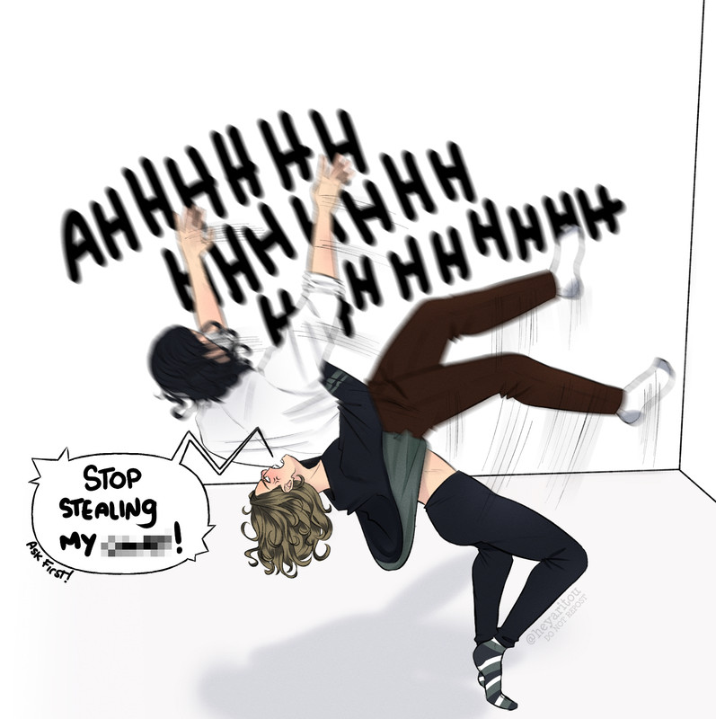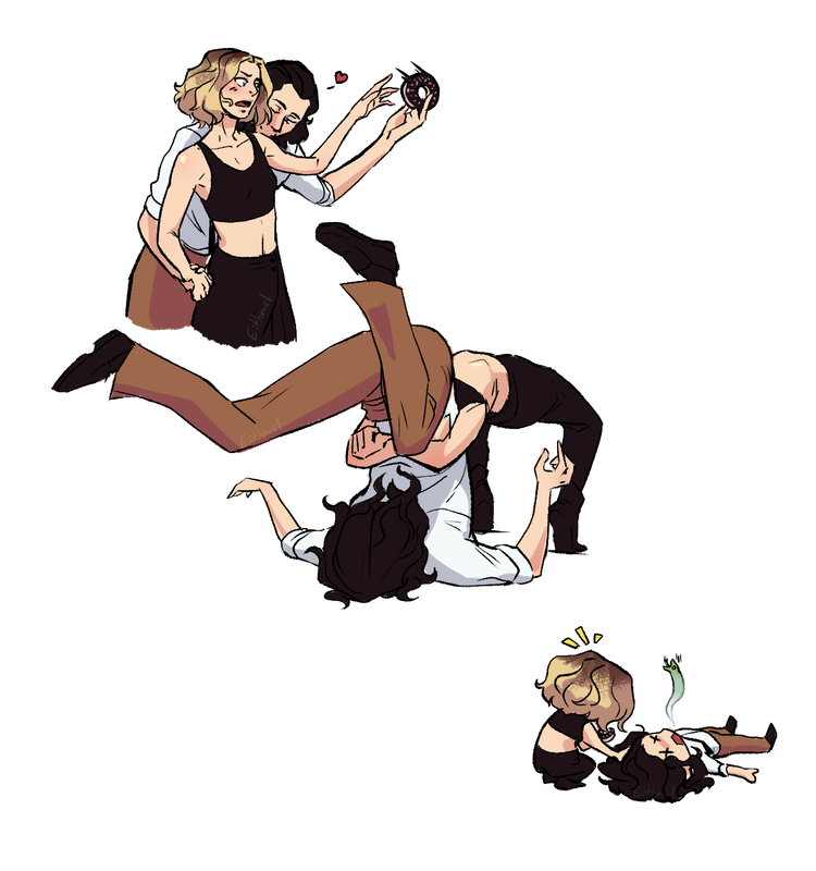 She hears him gasp when she knocks the air out of him with the impact, and he lands gracelessly on his back, eyes wide in shock. Sylvie straddles his hips and jabs a finger into his sternum in an accusatory gesture.