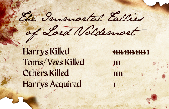 “Who are you?” Voldemort said, narrowing his eyes at the empty space below the words ‘Hello, My Name Is’.