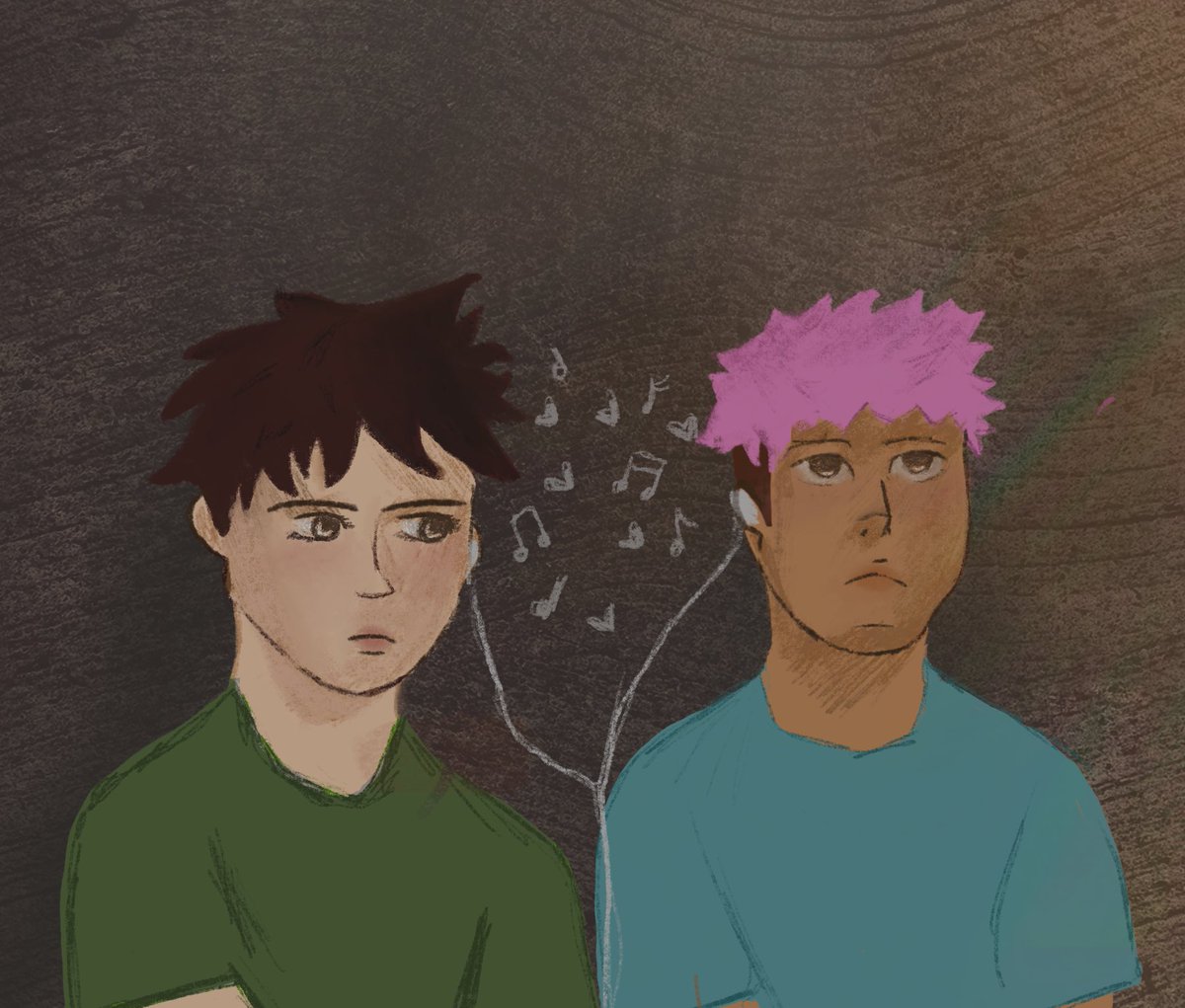 As they grew, their homes felt shrunken and stifling. They often retreated to the playgrounds of the elementary school they used to call their own in search of any semblance of privacy from their families. They would sit next to one another, backs against the brick wall, nestled between where the odd shaped building jutted out to form an alcove perfectly fit for them. One ear bud in each ear, always playing a song of Yuuji’s choosing.