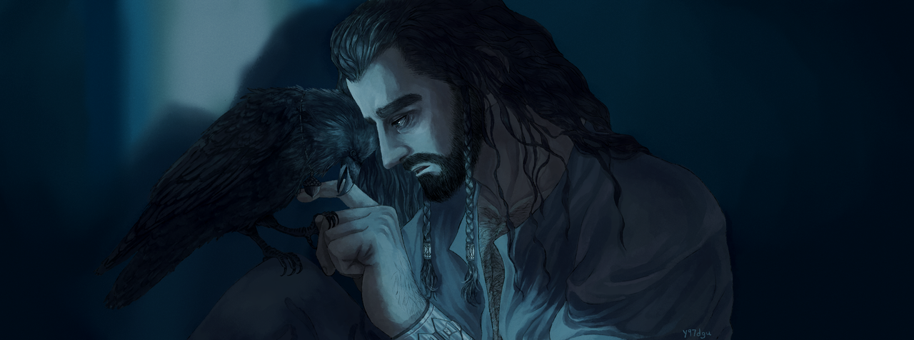 Through it all, Roäc watches him and Dís cautiously, shifting from foot to foot. Thorin notices it then: the unraveled necklace held between his talons. Roäc has never gone without it before, not even when the mere sight of it would send Thorin into a fit of pique. Was he planning on disposing of it? Flying away? Thorin wouldn’t have blamed Roäc if he did; he’s been far from welcoming.