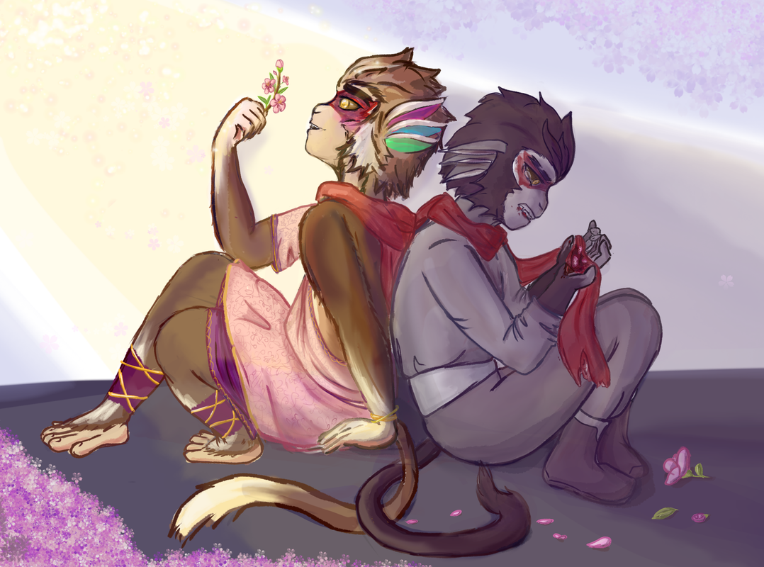 “Yeah, so I was supposed to go on a journey with him and all that,” Wukong explained as he laid in Liu’er’s lap, with Liu’er gently grooming his scalp. “But not even half a day into our adventure we were attacked by bandits! And you know what I did?”