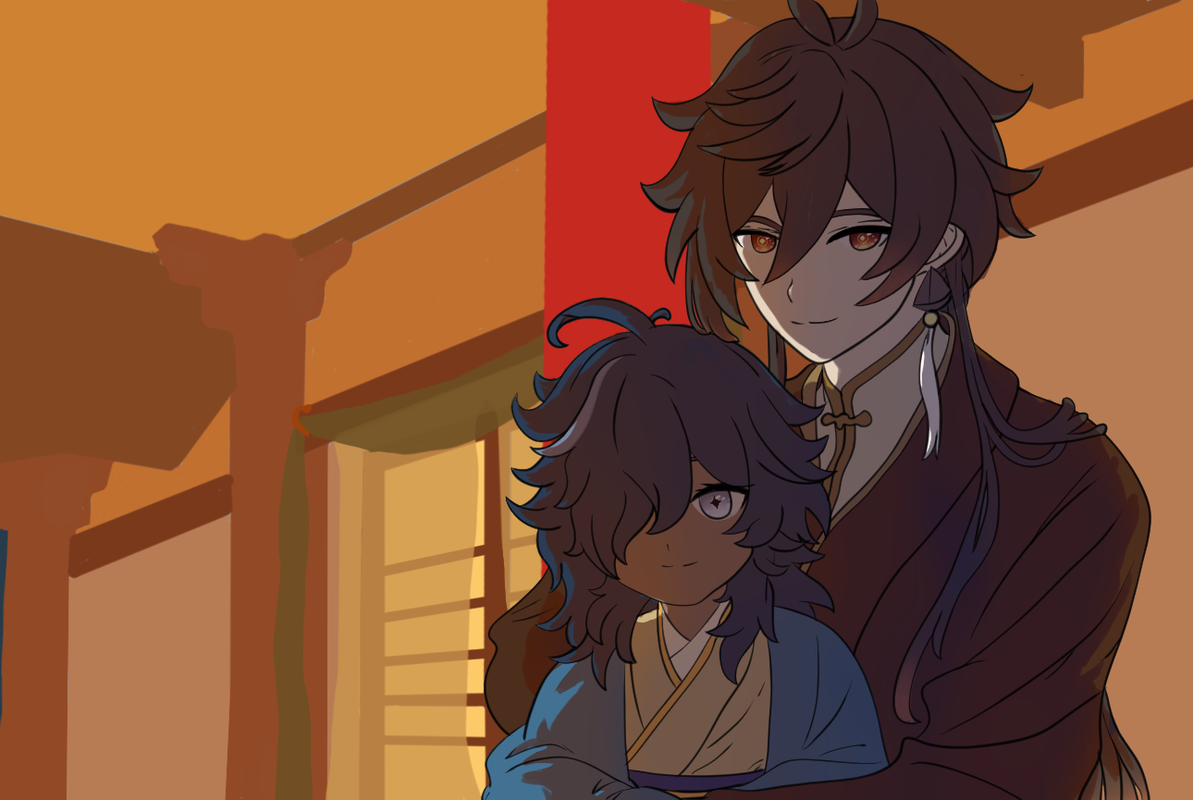 They dropped out of the teleport in the middle of the top floor room at Wangshu Inn and immediately Xiao regretted not explaining what he was doing a little more. He stumbled, nearly falling over because tiny arms were wrapped around his neck and exerting more force than had any right to in a mortal that small. The adeptus made a desperate sound and tried to pry him off, “Kaeya– Fledgling, let go-”