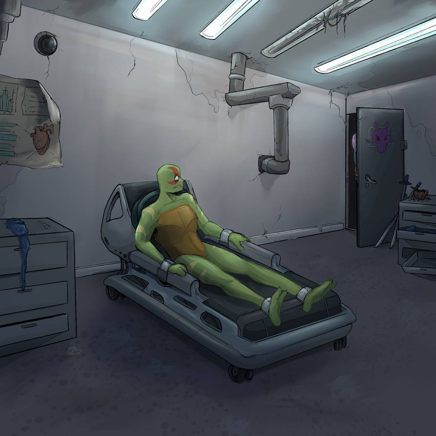 Donnie let out a choked gasp, his shell was tearing apart! The most horrible part was that he could feel it, he could feel the separation slowly get wider and wider. The tear starting from the base of his shell near his tail and was steadily and methodically travelling up.