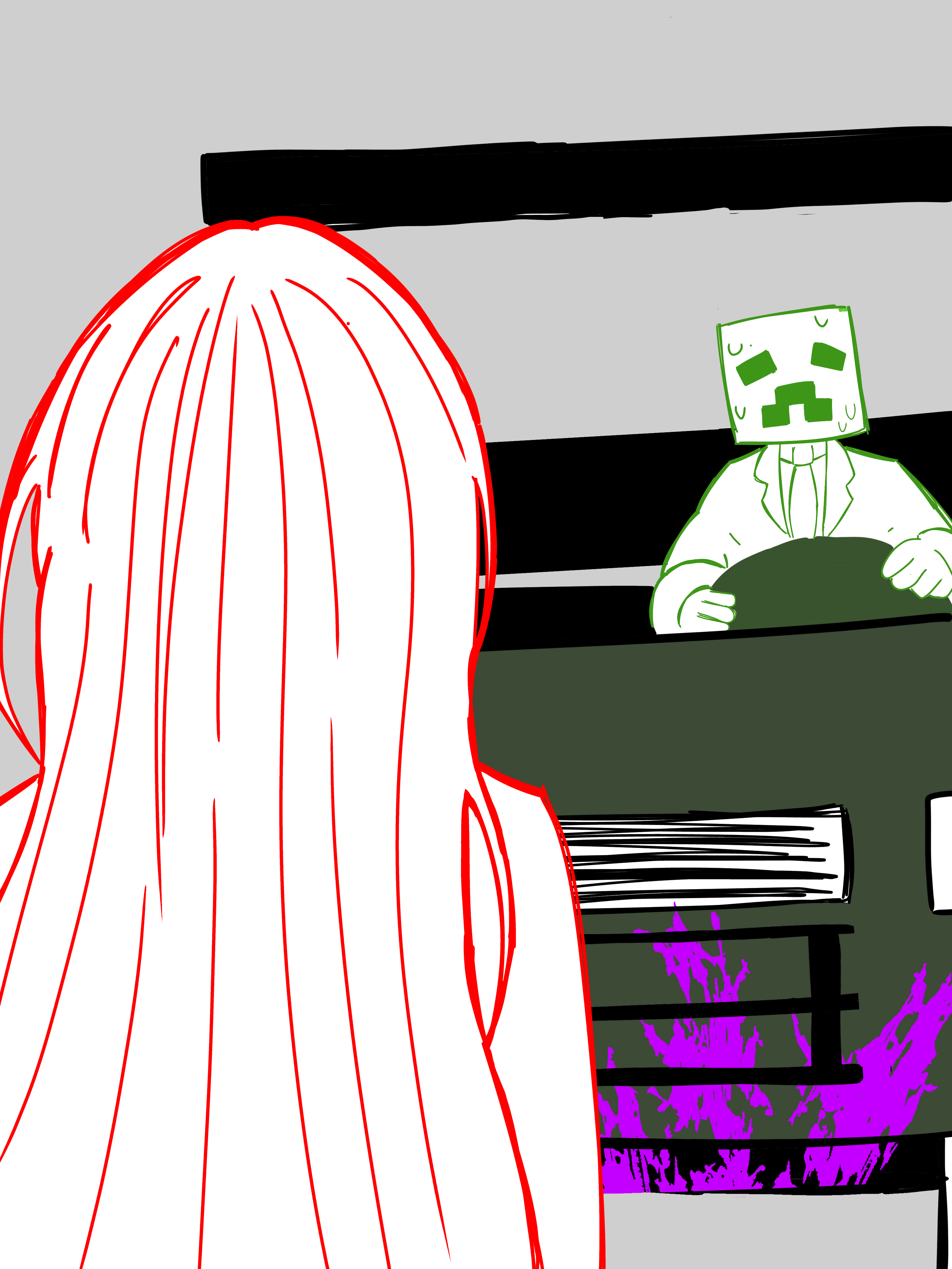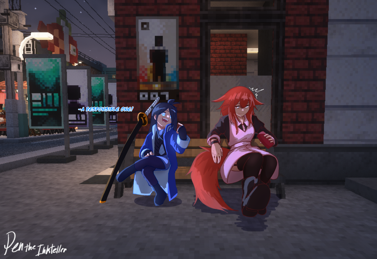 I wrote out the initial scene at 1 AM and snowballed it from there. My friends and I were playing on an SMP sooooo, here we are. Hope you at least got a chuckle out of this.