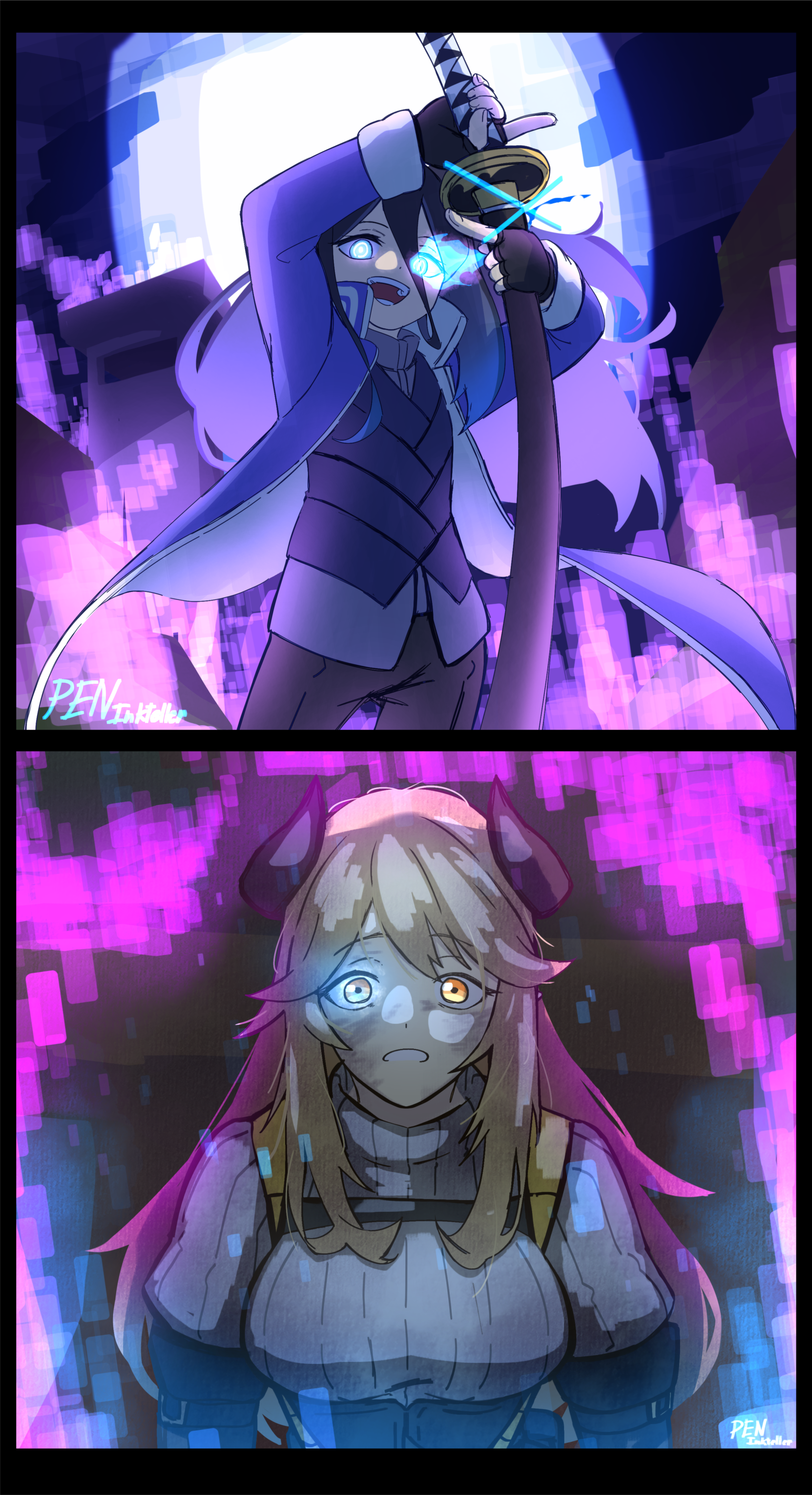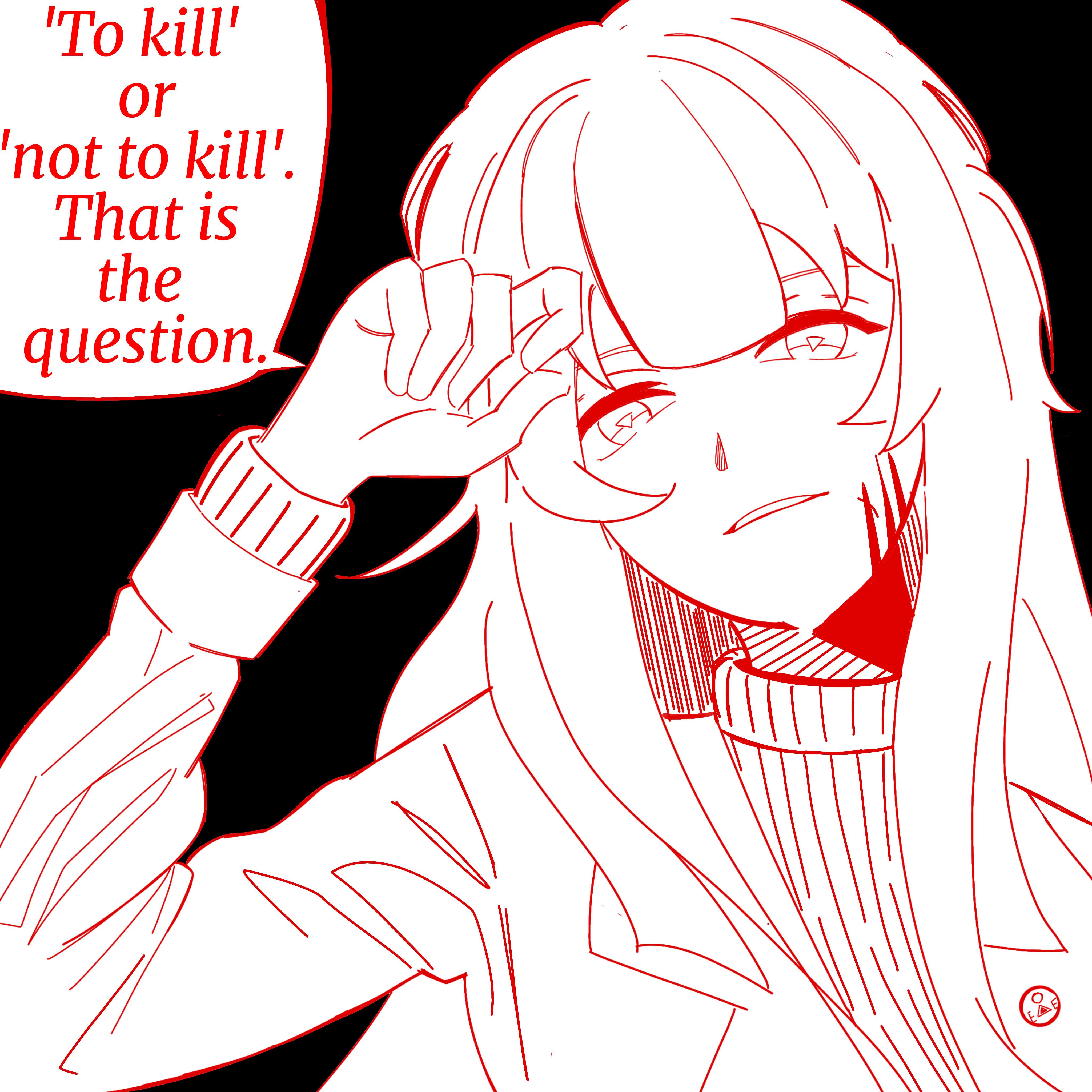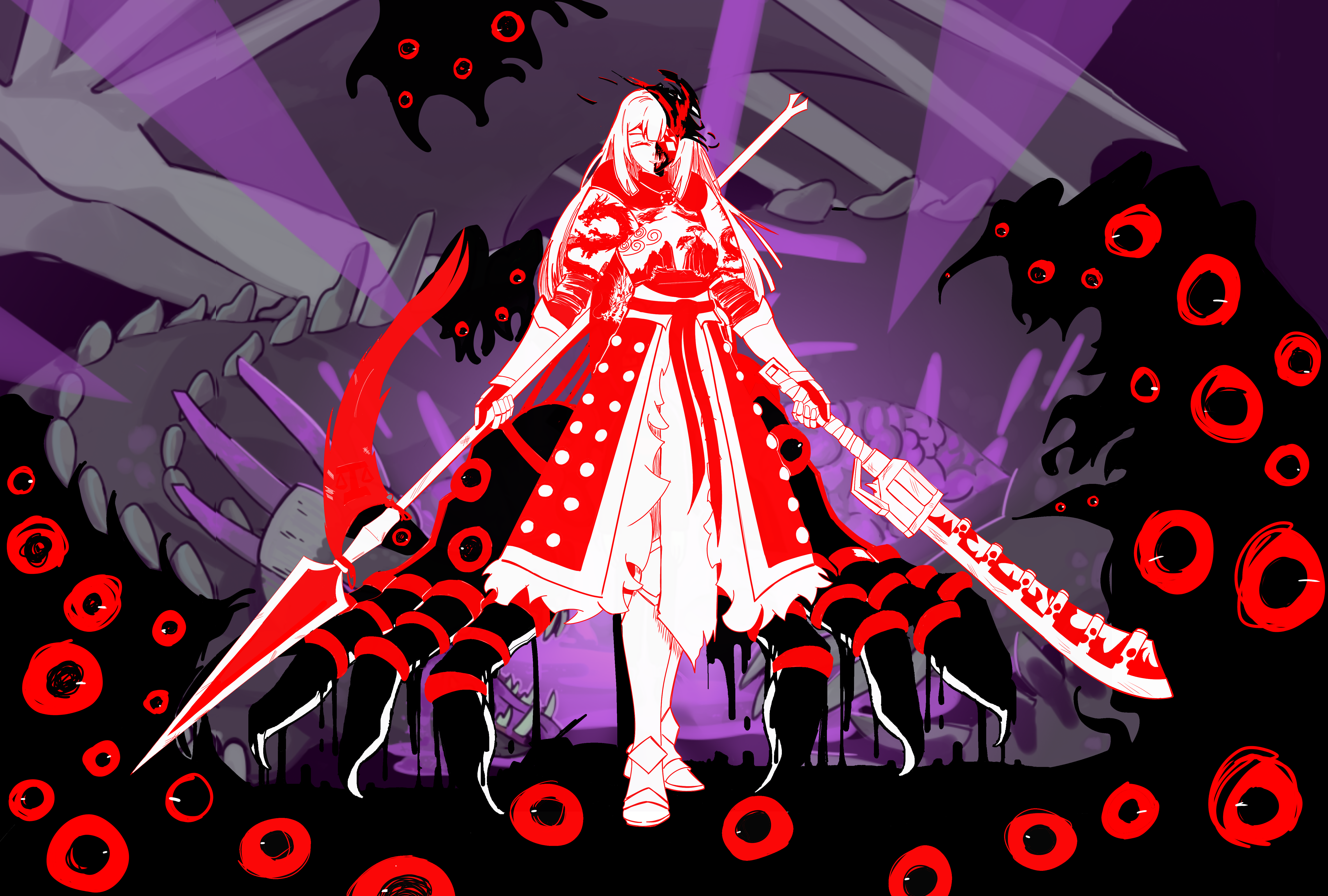 There. Right in front of him was the source of all of his fears, and the one responsible for the deaths of his comrades. Her gleaming axe shone brightly under the moonlight, revealing the splatters of blood dripping off its tip.