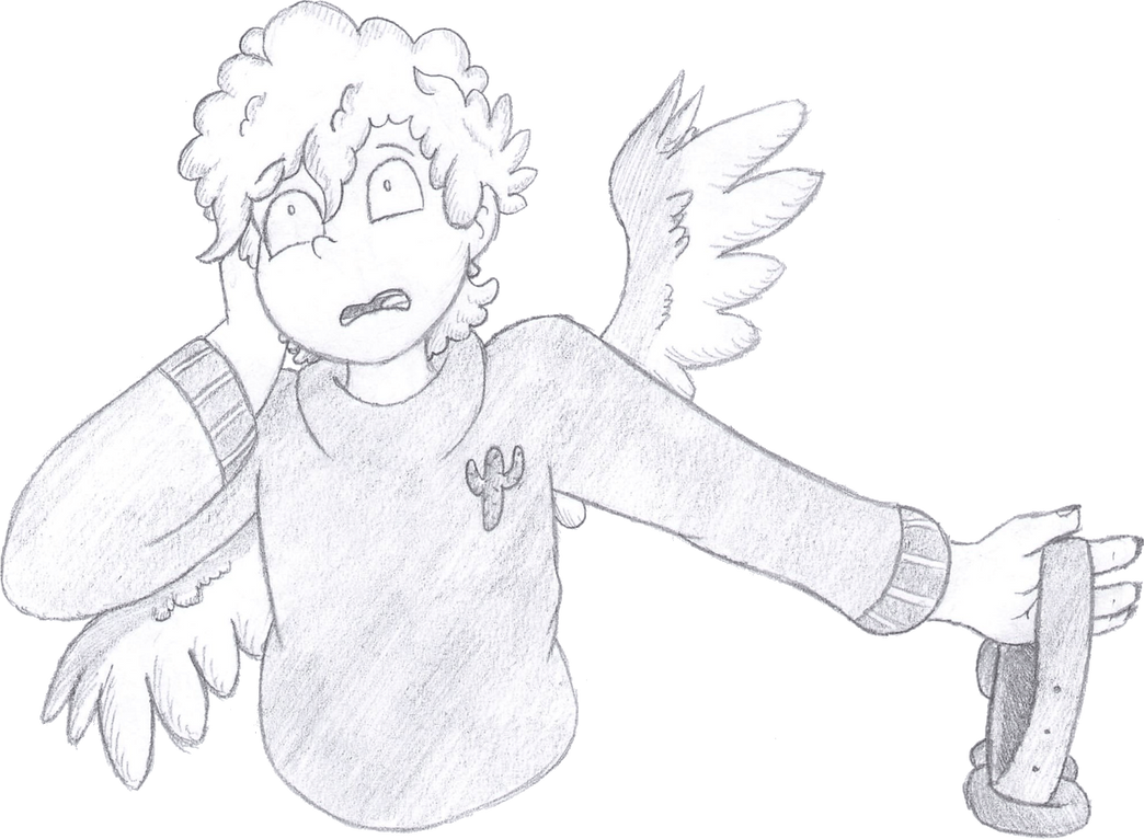 Guardians above, she is so close… They are so close… Lips that hide sharp zombie teeth hover near the jagged tip of his beak. Cleo’s hands slip across skin, surging higher, until they rest against his feathered chest. He can feel the twinge of code down in his back. One light push is all it takes to back him to the door. His wings crumple like a raincoat, and his legs wobble for reasons that might have less to do with vertigo and far more to do with beating hearts. Martyn swallows as he tries a shaky smile. And he doesn’t feel stupid and he doesn’t feel weird. Cleo’s palms are chilly cold against his skin. Nails curl against his pecs.