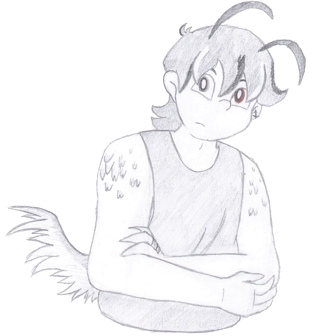 “Yeah, seems like it.” Cleo’s fingers dig tighter in his chest feathers. Their eyes flicker emerald and olive-jade. “Does that mean you’re hungry yet?”