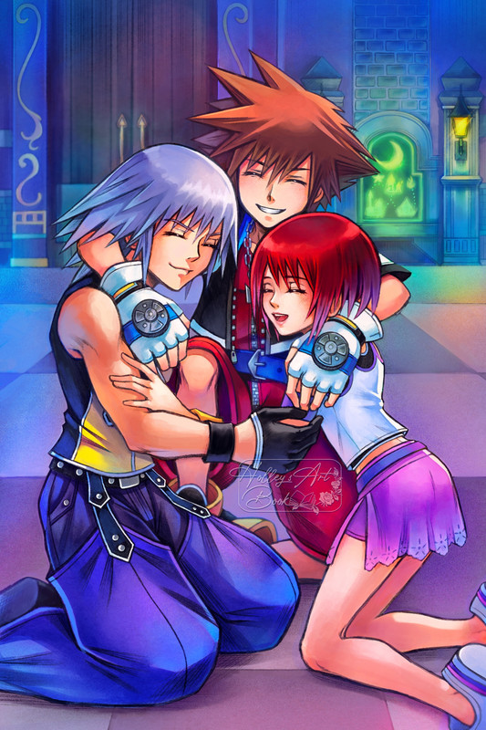 “Hey, cut it out, you’re squeezing me,” Riku finally said, pulling out of the hug. He cleared his throat. “Well, looks like you two are still all safe and sound.”