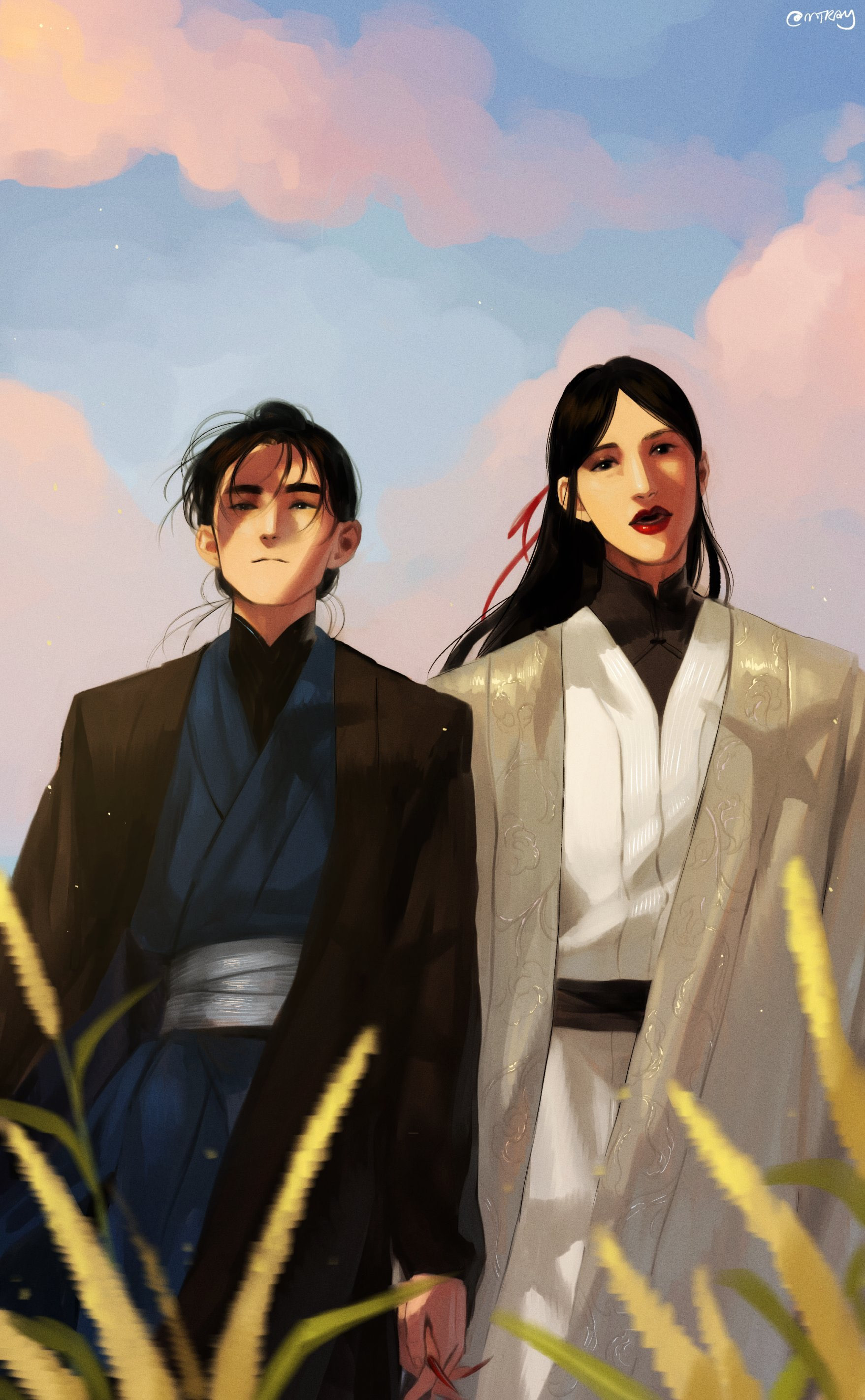 They had stopped at an abandoned farmer’s shelter to watch wild geese fly over the golden fields when Wen Kexing reached out for Zhou Zishu’s hand. He did not take it in his; instead, he rubbed the outermost bone with his calloused fingertips as if to warm it up. Then, once he was satisfied, he hooked their little fingers together. Lightly, he asked, “Ah Xu, do you think we will grow old?”