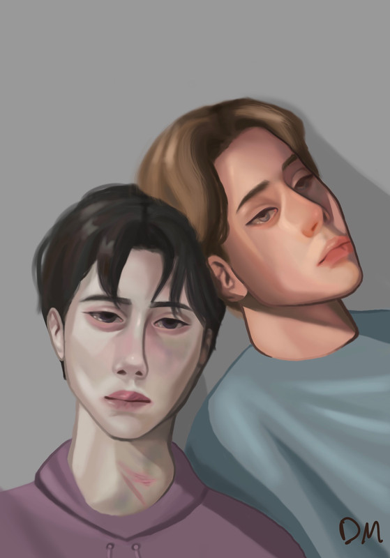 Time passed, Harley isn’t sure how long, before Peter begins to stir. Harley jumped at the movement, preparing for any kind of reaction this stranger could have. As Peter’s eyes slowly blinked open and met Harley’s the blonde boy felt his heart thump. They were beautiful brown doe eyes that perfectly contrasted with Peter’s pale skin.