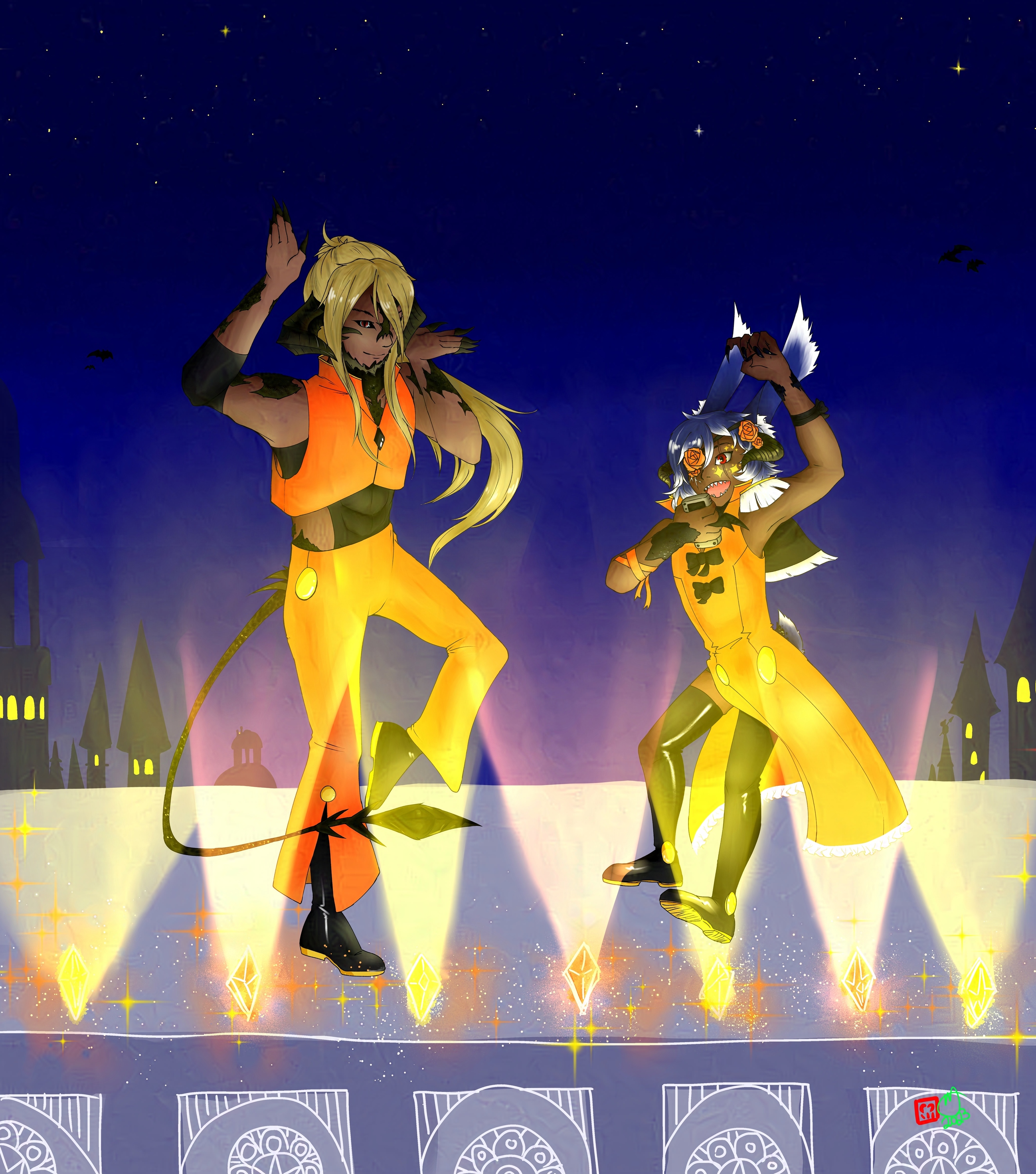 He surged forward, grasping the microphone with both hand. The crystals blasting out the music in time with the light. More pops happen behind him as more humanoid voidsents burst into existence. Marching behind Odori in rhythm. They are his back up dancers.