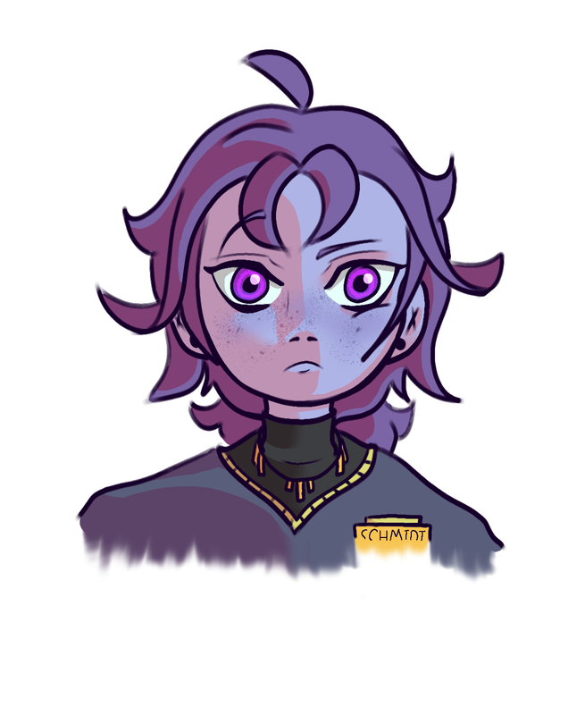 It had been about three months since Michael had woken up from the ashes of a certain pizzeria. He was happy to say he was somewhat healed from the fire but a dead person is still a dead person. His Scars had been fully healed with the exception of the scar. Michael also had his organs back which was very pleasant considering you need those to function. He regained his past build with broad shoulders and a very lean look, no longer the twig he was after the incident with his skin clinging to his bones. That is to say he was nowhere near ripped, he didn’t have the effort to try. But Mike's favorite part would have to be the face. He had eyes and lips again which he really was thankful for because it made him look more human and less walking abomination. Lastly his hair had grown out although instead of the brown it seemed to have faded to a light-ish purple color. Speaking of, his skin was still purple which was very much not appreciated. Mike was really getting sick of purple. Although the dark purple his sickly skin had been was bleached to a lavender color making it slightly better but not by much. The worst part was his eyes, well he had gained eyes instead of empty sockets with small white pinprick pupils, his new eyes were now a violent violet color. God did Mchael hate purple. If he wasn't a purple man before he was now.