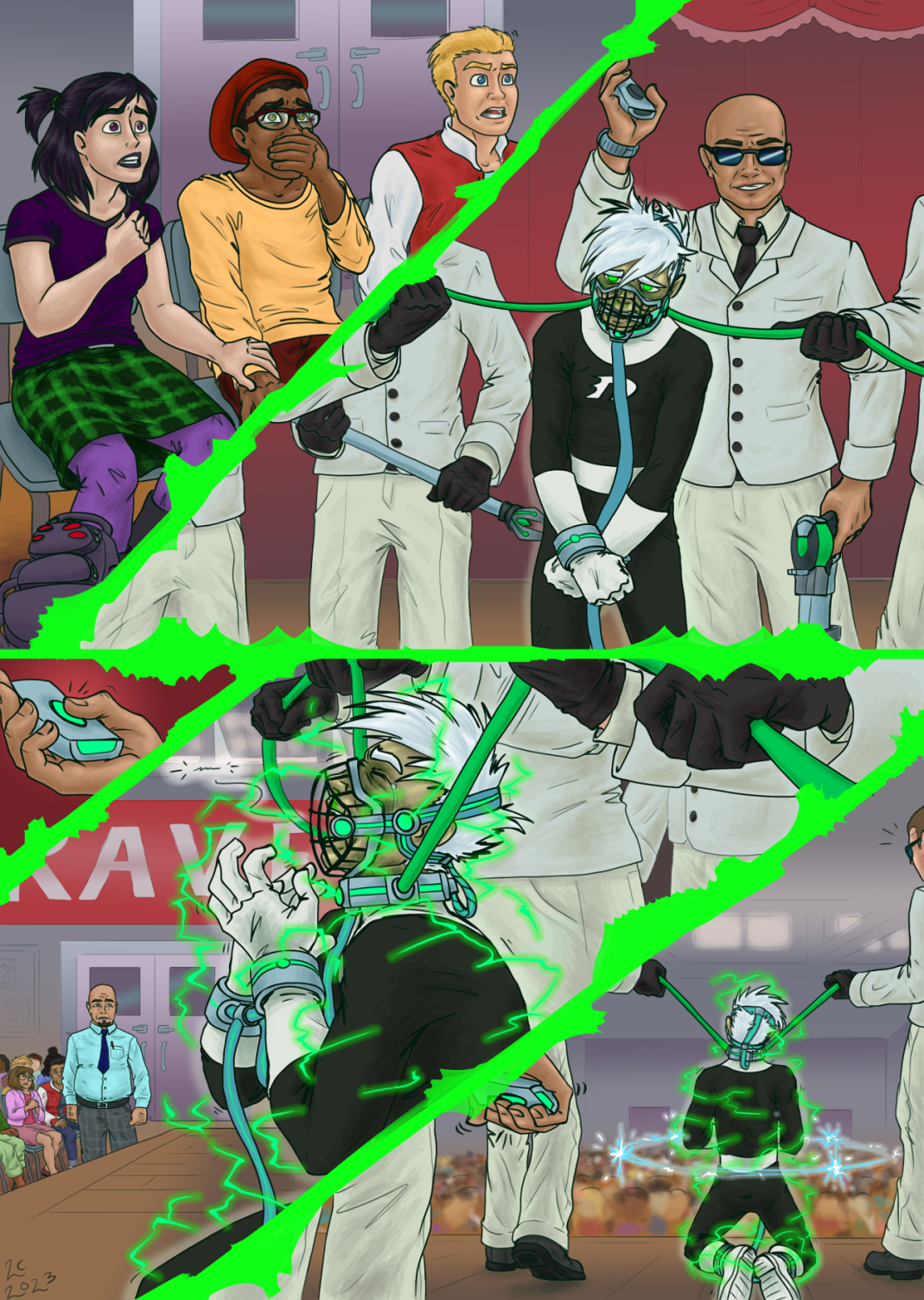 The shackles on his wrists and ankles were soon clanging to the floor, only needing one of the collar’s keys to undo them.