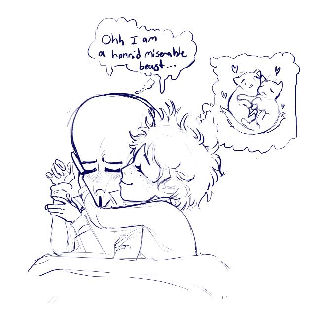 "Mm. Yes, well. I already have a headache, I don’t need shouting to make it worse." He drops his wet gloves on the floor and repositions the peas with a sigh.