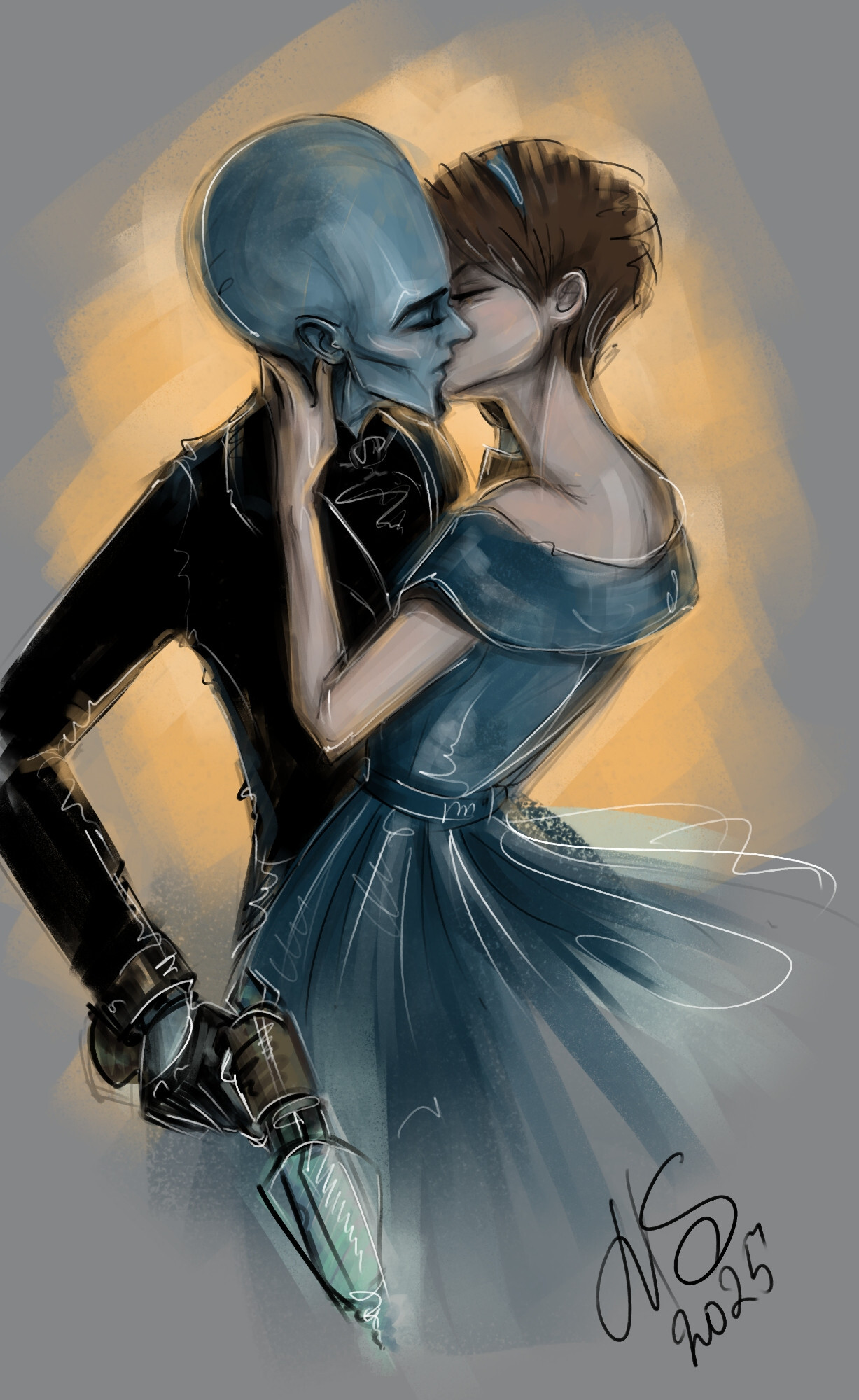 Now Megamind sits up fully and leans his elbow on the back of her sofa, grinning with all his teeth. "Physics and engineering," he says. "Doctor Girlfriend is also a genius with a degree in engineering. Do you have a type, Miss Ritchi?"