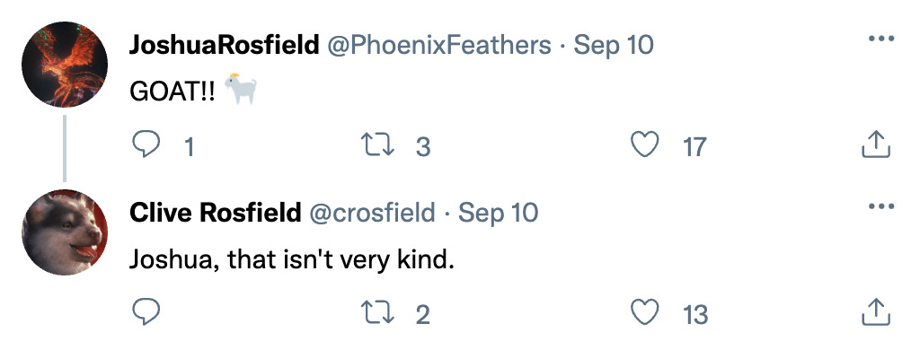 Clive (yelling in the background): "Joshua!!! This is NOT the time!!"