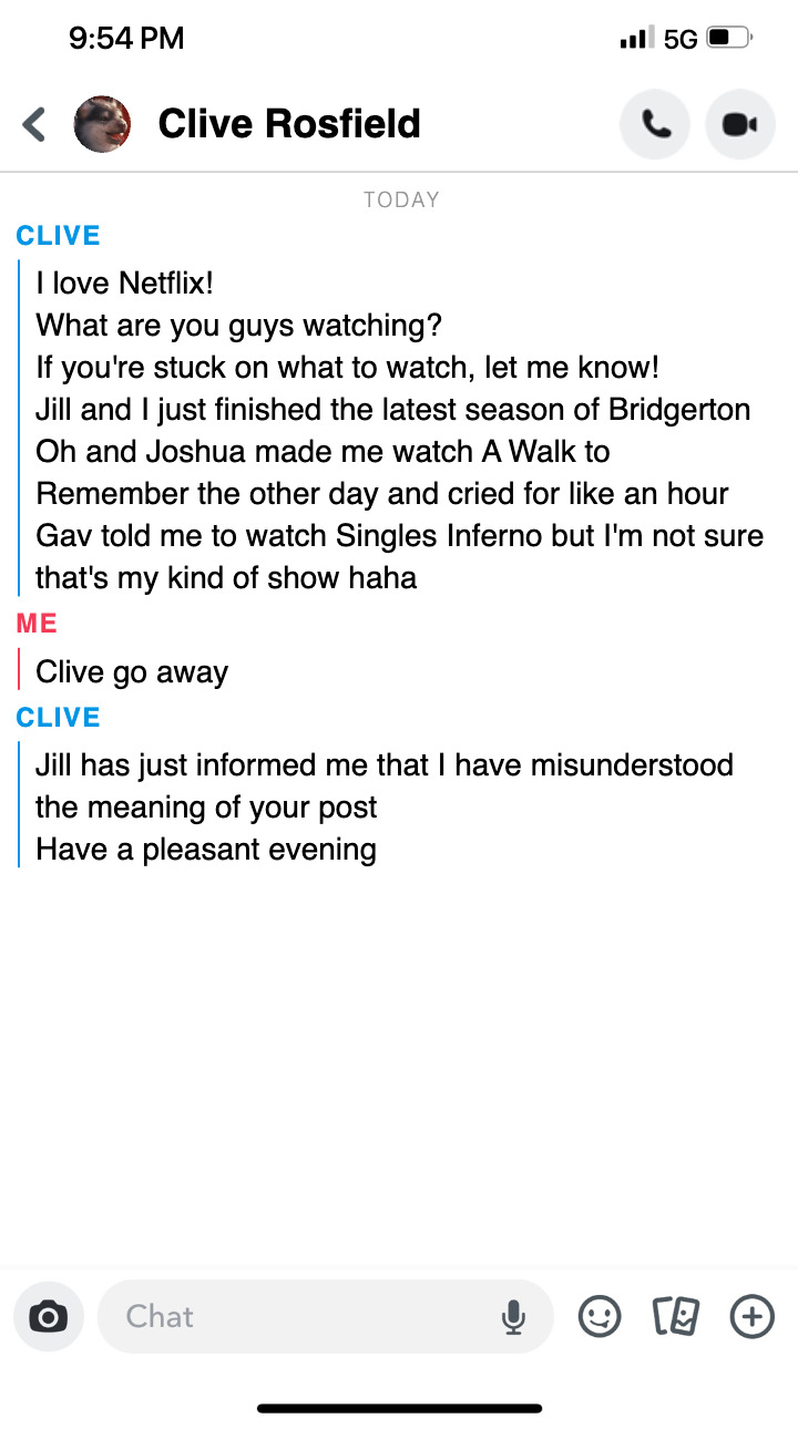 Jill wishes Clive knew what "Netflix and Chill" meant 😞
