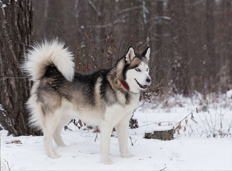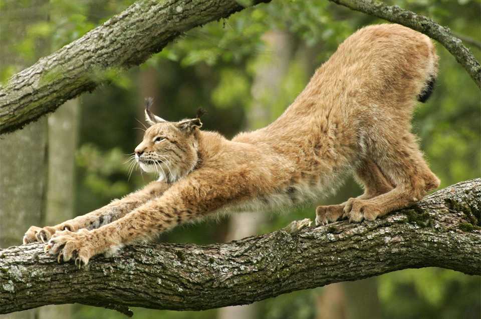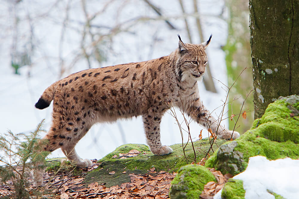 In action: glossy sleek Eurasian lynx slaying a catwalkTony vibes (Siberian Husky)