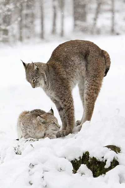 - Two lynx facing off , involving odd sounds, growling, a scream and a paw slap