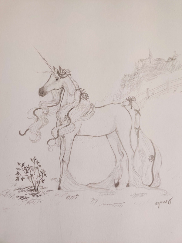 The mare was white without a speck of color and spindly. Alina had built the fence after the second time the unicorn had appeared, hoping that the tight space and the thorny bushes would deter the unicorn from entering. But no, for some reason the mare was dead-set on being around Alina’s roses.