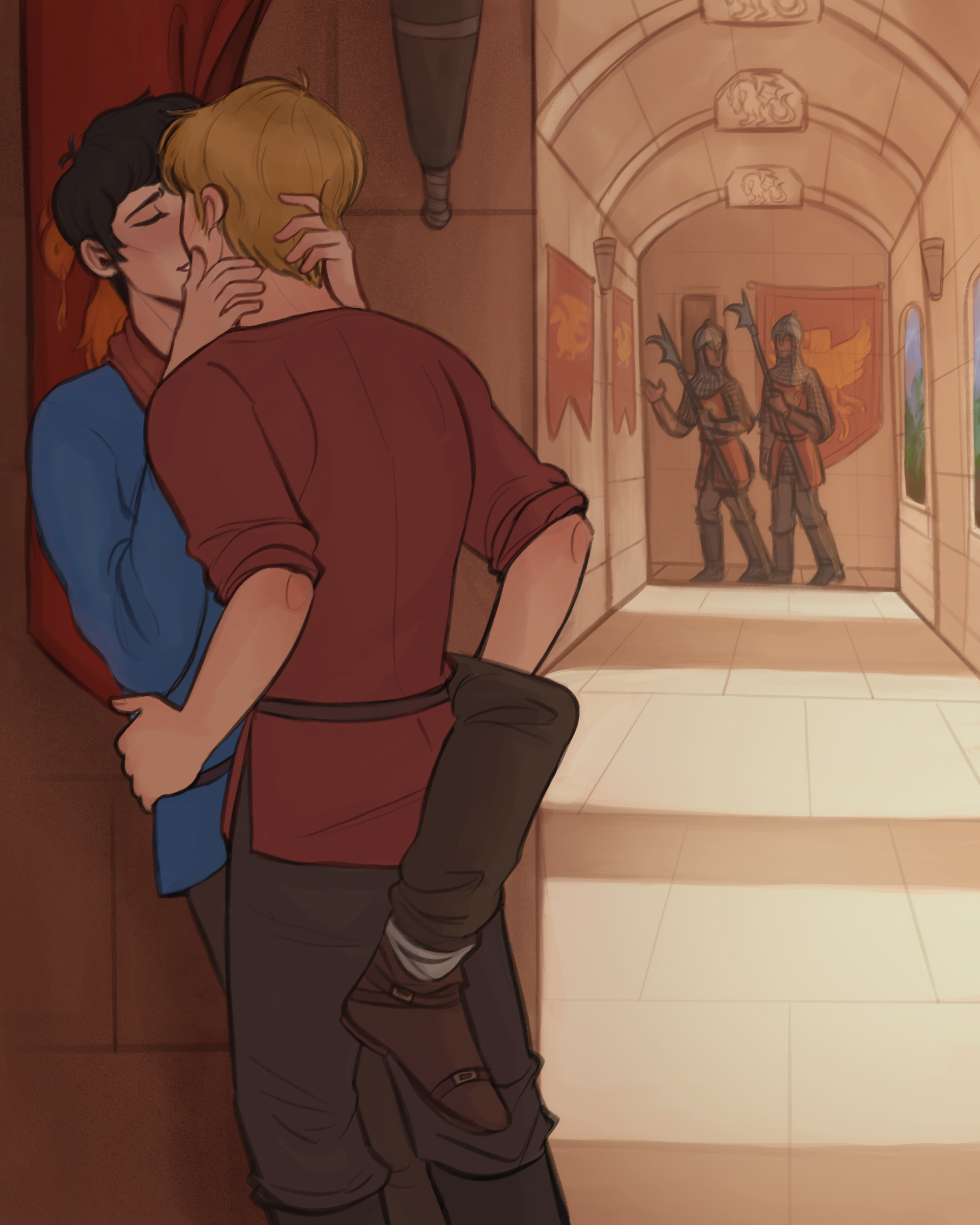 “Merlin’s head is spinning as he gives himself over to the kiss completely, until all his sensations are just Arthur Arthur Arthur – his strong hands on Merlin’s hips, his quick exhales against Merlin’s cheek, his scent: a mix of roses from the soap used by the laundresses and something almost like pine wood, and his determined focus, like all he cares about right now is kissing Merlin and nothing else in the world.”