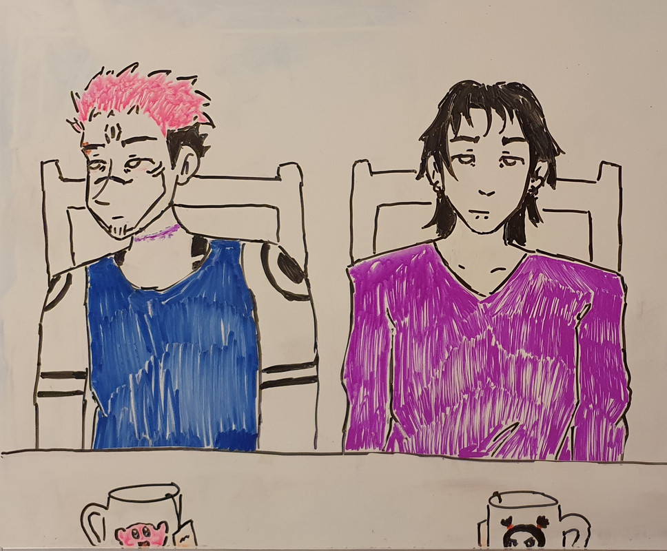“Hey, why would you bring that up right now?” Despite the assertiveness in their dad’s tone, he keeps his demeanor calm. Choso commends his father on this; how well he handles Sukunas spews and aggression. On the contrary, Yuji visibly shrinks as he stands beside, but half a step behind, Choso. He turns back to look at him. They meet eyes for a split second before Yuji turns his head around but it is long enough for Choso to see how glassed they look.