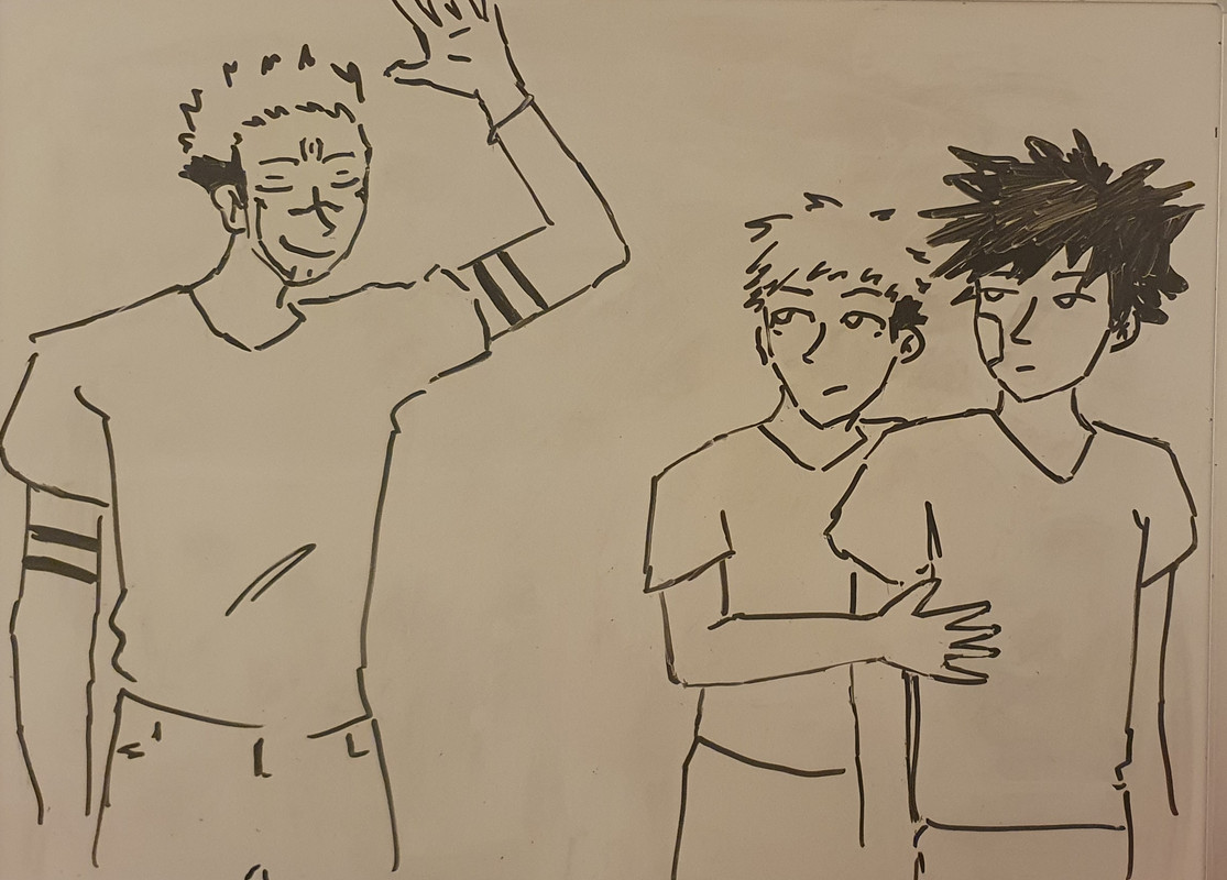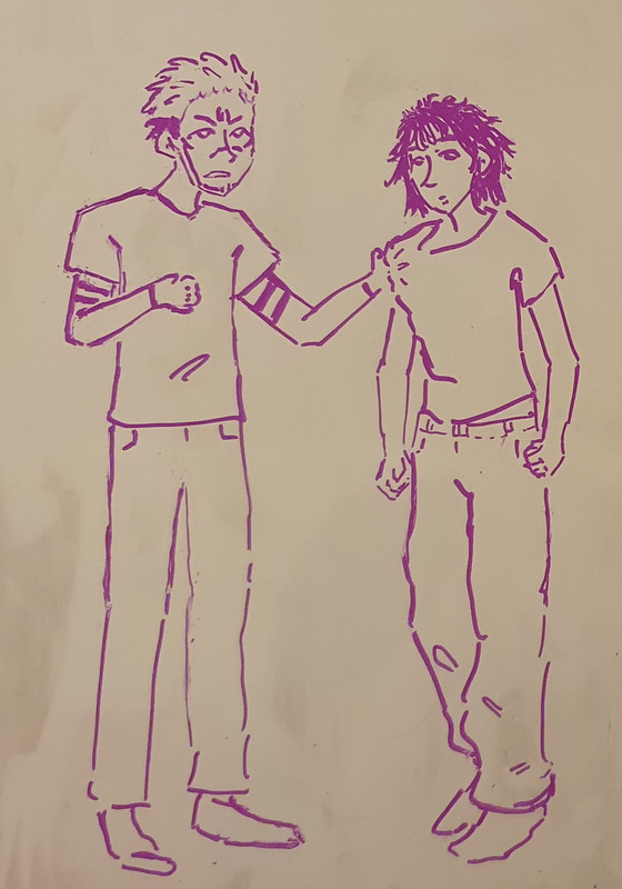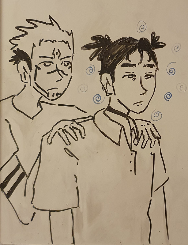 “It’s okay, really,” He states, hoping he has an ounce of authority left. Reluctant hands let go of him, and he gets up on his elbows. His head throbs. Not wanting another wave of embarrassment, he takes his time getting up, making a point to present himself in a better condition than he feels. “Sorry,” he mumbles, almost to his own surprise. It’s Choso’s hand that finds its way to his shoulder.