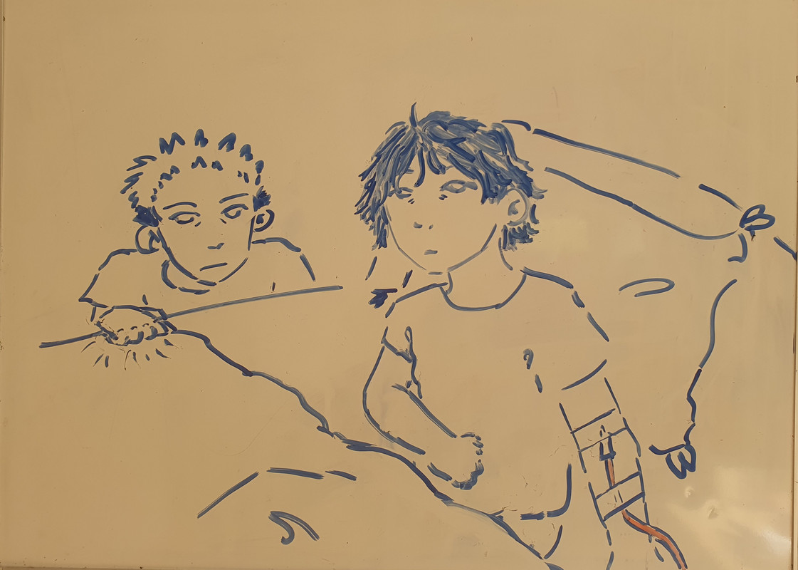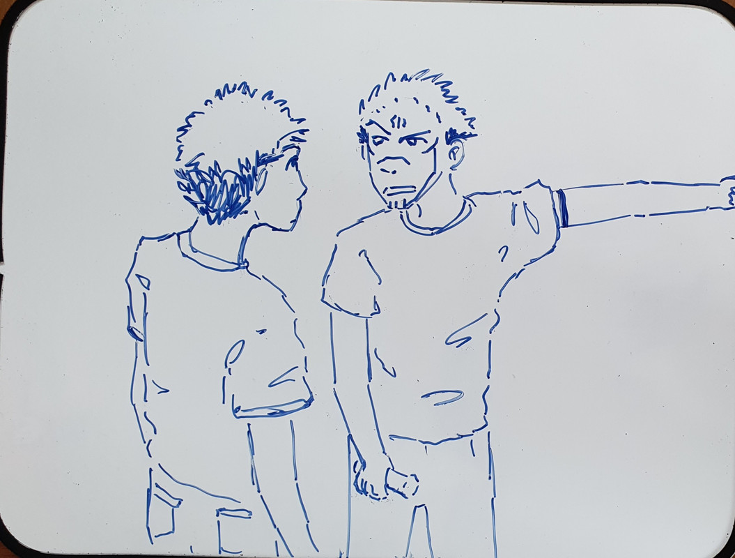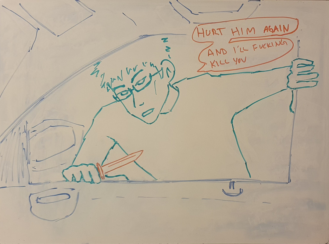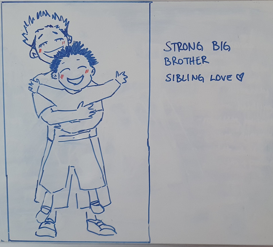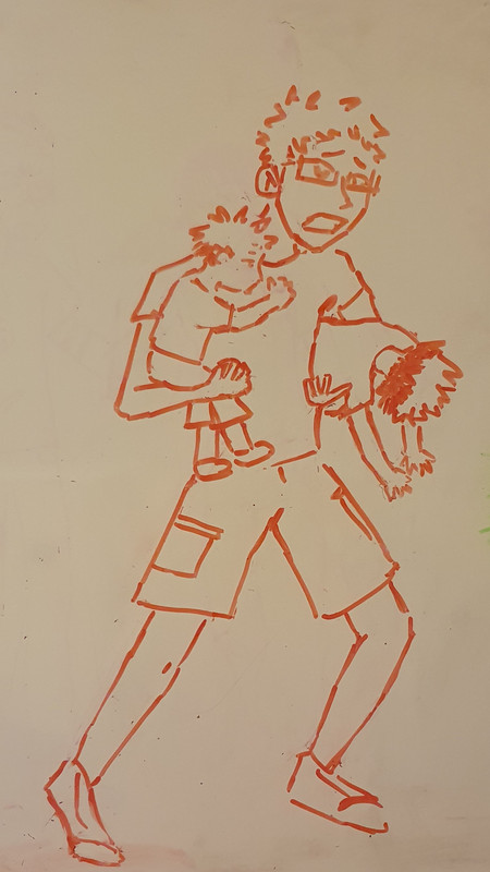 Their open hands plead towards their brother. He looks up at them with the most defeated look. Pale, faint, and scared, but with absolutely no indication of following the orders.