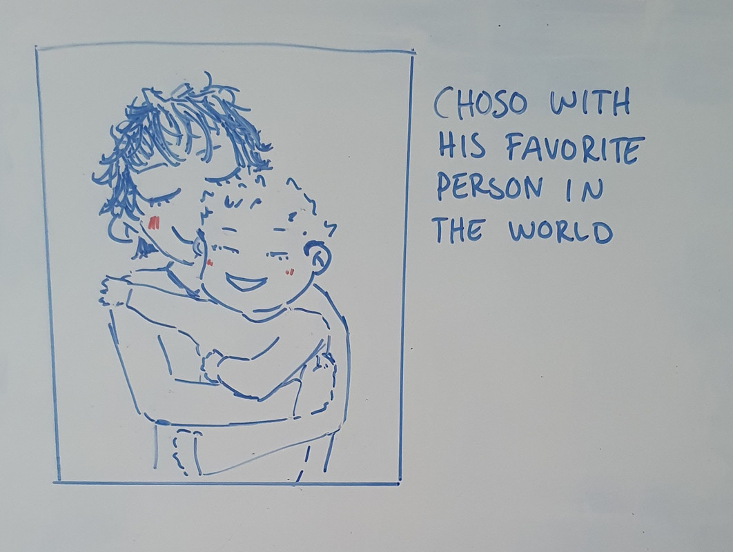 “Yuji, don’t cry,” he requests quietly. His breath hitches, and the stream of tears increases. “I know I’m not a good older brother, but I want to be,” Choso hicks through the words. “I-I’m trying and I’ll try even harder,”