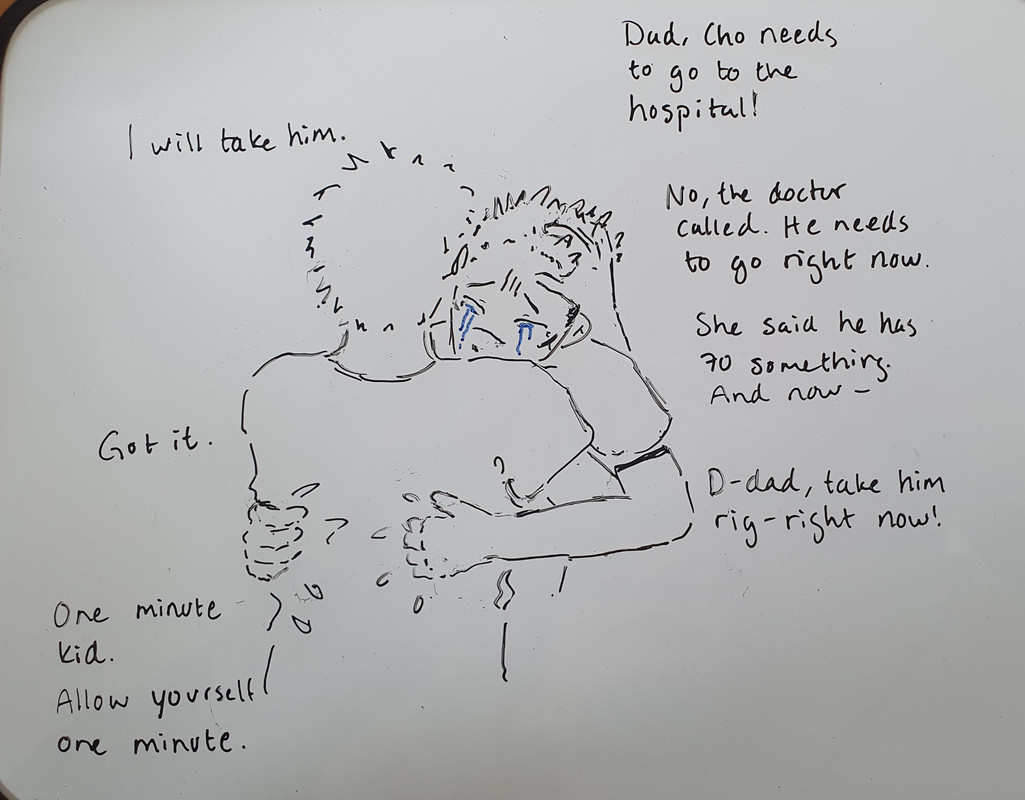 “Cho, get on your feet.” It’s a command. His chest feels empty. Relief and horror are battling somewhere in his periphery, but he remains cold.
