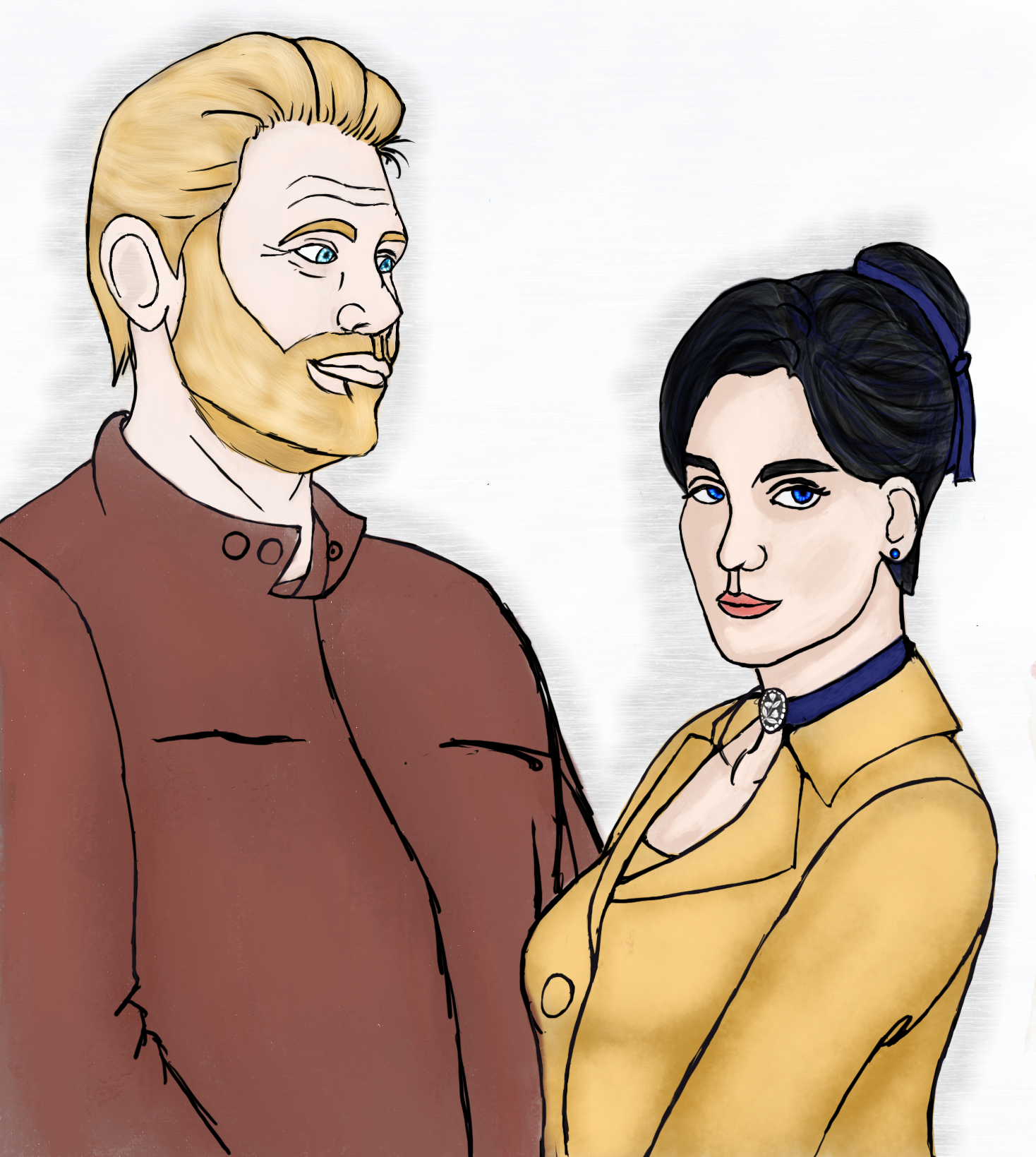 Lucifer took out a blue choker necklace with a cameo pendant in the middle, carved to reveal a delicate portrait of Castiel’s current form. Castiel bowed his head to allow Lucifer to fasten it around his neck and then stepped back slightly to observe how it looked. “There. Why it brings out the blue of your eyes,” he said with a wink. “Don’t worry, I’ve got a ring for you, too.”