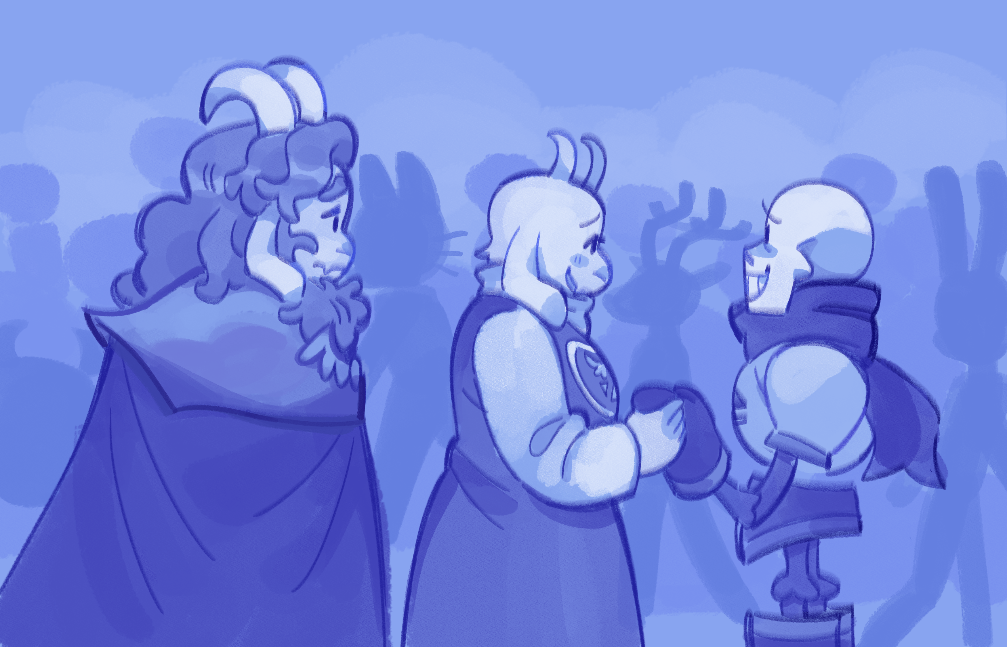 Though Asgore certainly didn’t want to take care of things in the morning, he realized suddenly that Toriel had said she would be taking care of things, too. She wasn’t going to leave him alone anymore. After all this time, she’d decided—or at the very least, she was telling monsters—she wouldn’t abandon him again.