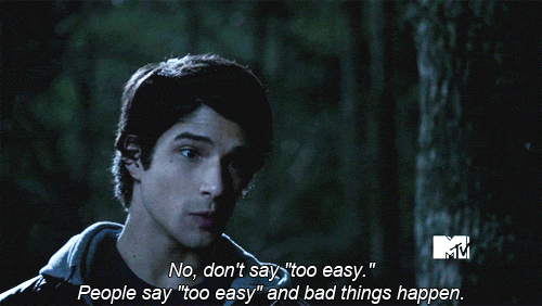 “Well, I think I was distracted by the pain and blood pouring from my side from the bite that not wolf gave me,” he said mimicking Stiles earlier sarcasm.