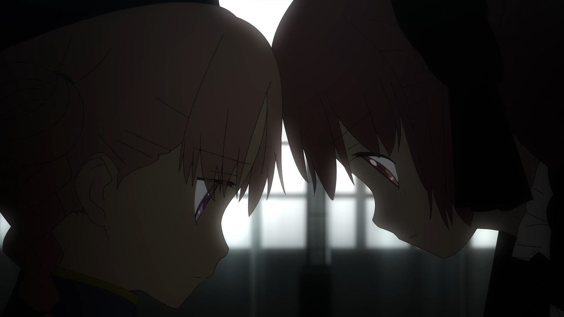 Firstly, I was very glad that despite the time constraints, they actually portrayed my girls the way I would have wanted them to (evidently, had I been in charge, I would've made it just a touch gayer). What I mean by that is, well, this is part of my rant about how people never stop to think about the mental health of younger characters because ageism goes brrrr, so I think I don't need to draw the connection for you as to why I was pleased with the anime. Touka was, from a certain point on, under immense pressure from literally everything. It's the type of pressure that would break an adult, let alone a child. She doesn't lash out just because she's immature or impatient or arrogant (though there are pieces of that at play here), she lashes out and gives into impulse because she's stressed out of her mind. That mostly applies to the Magius era, you might think. And yeah, you'd be kind of correct, if not because trauma is a scar that doesn't go away so easily. Especially for a child. I'm not gonna go in-depth about the long term consequences of that stress on Touka, but in the anime we did see her have A Little Bit Of A Mental Breakdown when she remembered what she'd tried to do to Iroha and all that, and in the anime they showed us a bit of the pressure Touka was under. We also saw something that I don't believe we've seen more than once or twice ever for Touka and Nemu, and that is direct verbal communication on camera. In their own way of course. Let me analyze that scene.