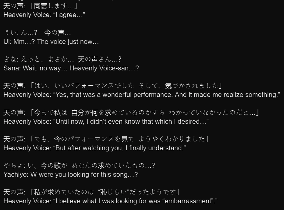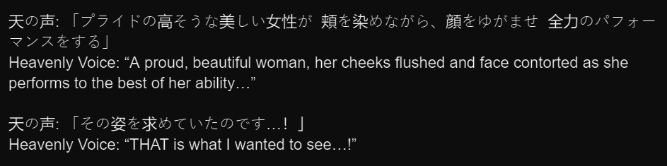 And see, that sounds normal. For once, it’s not the text of the Rumor itself that is incredibly sus. It’s the way it acts. Let me explain for those who haven’t watched the event or don’t remember it well. This Uwasa is a little bit odd in multiple ways, for example it recognized Madoka and knew about the record being an anomaly and all that stuff. But the thing that stuck out to me like a sore thumb is that it’s the most blatant admission of a humiliation kink I have ever seen in my LIFE, and it wasn’t even hardcoded into its biology like most of the other stuff is for the other Uwasa. I left this one for last solely because of how much I’d have to just show you the script over and over (I would show ingame screenshots, but that would take up so much more space). Without further ado: