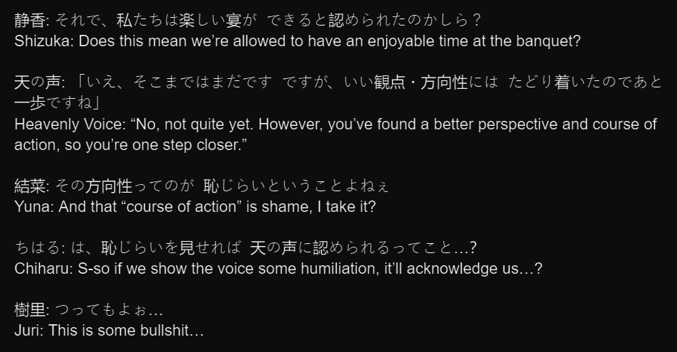 So… Yeah, what was that all about exactly, Nemu? The invitations it sends out also seem to put people into a sort of trance or influence them in some way without anyone noticing. Those who are trapped feel helpless because the Uwasa keeps on forgiving them when they mess up and won’t even react to them trying to break its Labyrinth. Condescending. Like they’re children. I should’ve titled this essay “Nemu is not beating the BDSM allegations” or something.