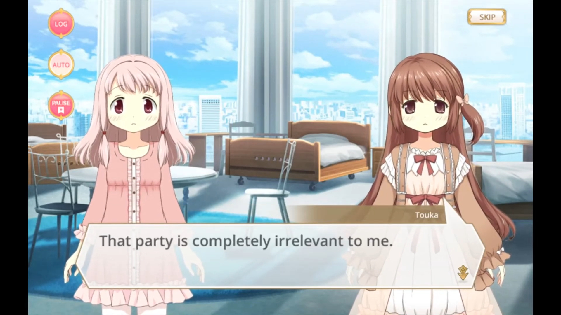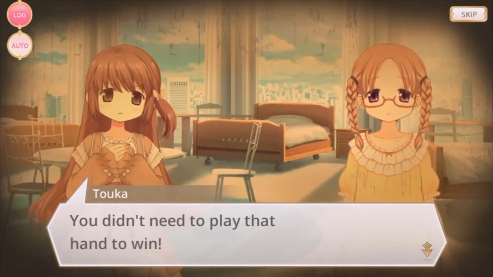 First question, dear readers. What type of person do you think Dr. Satomi would marry and remain married to? Someone loving, smart, kind, understanding, someone with a strong sense of ethics (like his own) and duty. Which doesn’t line up with Toukamom’s ingame behavior but does line up with what others say about her. Nayuta tells us in her quotes that Touka’s mother is a kind person of gentle heart (unlike Touka, she huffily adds). I fully believe that (and that Touka can grow to be a lot like her mother under the right circumstances). But then, we arrive at the key question. If this is the case, where is she? No visits, no phone or video calls or texting. Zero mention of them, even though the Tamaki parents are mentioned to do those things. It can’t be an overseas job, because Touka mentions in her MGS that her mother is at home. And Touka’s father wouldn’t be so permissive of his wife not showing their daughter any love or attention when she’s so sick and could die any day of the week. Unless.