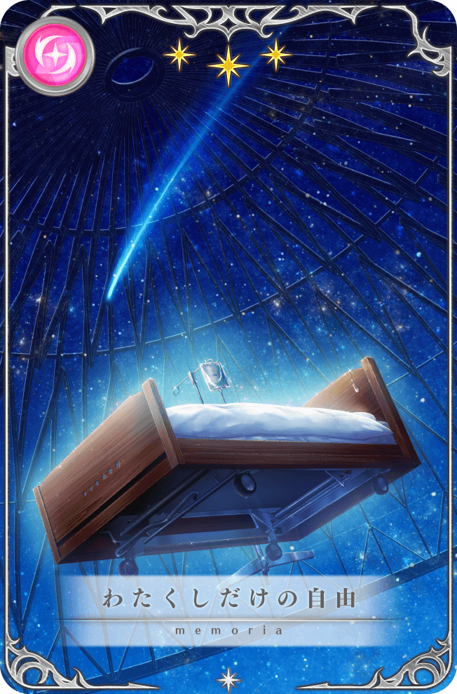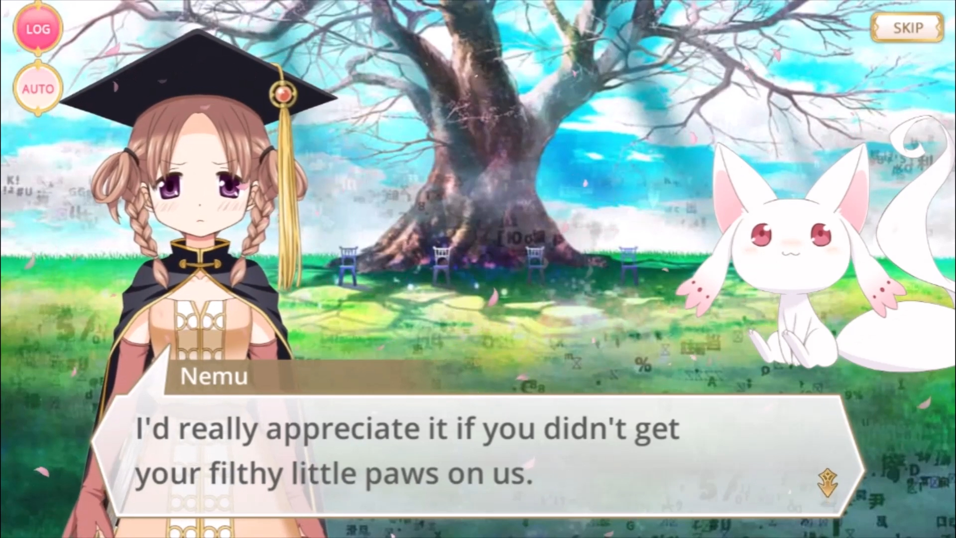 This specifically ties into Nemu even more because Nemu is painfully starved for affection. For meaningful connection. For home. For, as Shizuku may put it, a place to belong. Touka has her father, and while he can’t exactly understand Touka the way Nemu can, I’m sure Nemu has been jealous/bitter at some point due to Touka having a loving, affectionate parental figure. Her personal memoria is very on the nose about what she wants most, as is her MGS, but especially the personal memoria. To quote it directly: