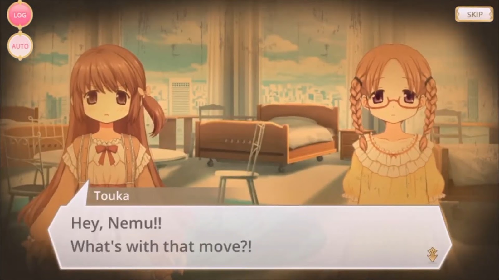 Touka's levels of vulnerability in the Magius era. That's already interesting by virtue of it being the Magius era. That's a really interesting era. Ui was what brought Touka and Nemu together and Ui was the cornerstone of their relationship for a while, so losing that RETROACTIVELY kinda makes you wonder exactly what their memories of the hospital era became. How exactly the two of them met, became friends, came to share a room, etc. Because the base unit quotes are from their Magius selves and so we know they very much remember being roommates for a long time and still consider each other reliable and trustworthy (also their behavior towards one another in the entirety of Nemu's swimsuit costume story spawns many questions when you stop to think about it, but I will touch on that some other time). We know that, in reality, the hospital trio began to share a room after Touka, in her infinite princess behavior, asked her dad to put all three of them in the same room because it was annoying to walk between the rooms so often (source: TouNemu Christmas alt quotes). Interesting choice on her part back then, considering she seemingly wanted Nemu out of the way, but I will touch on that another time because the hospital era is worth its own analysis.